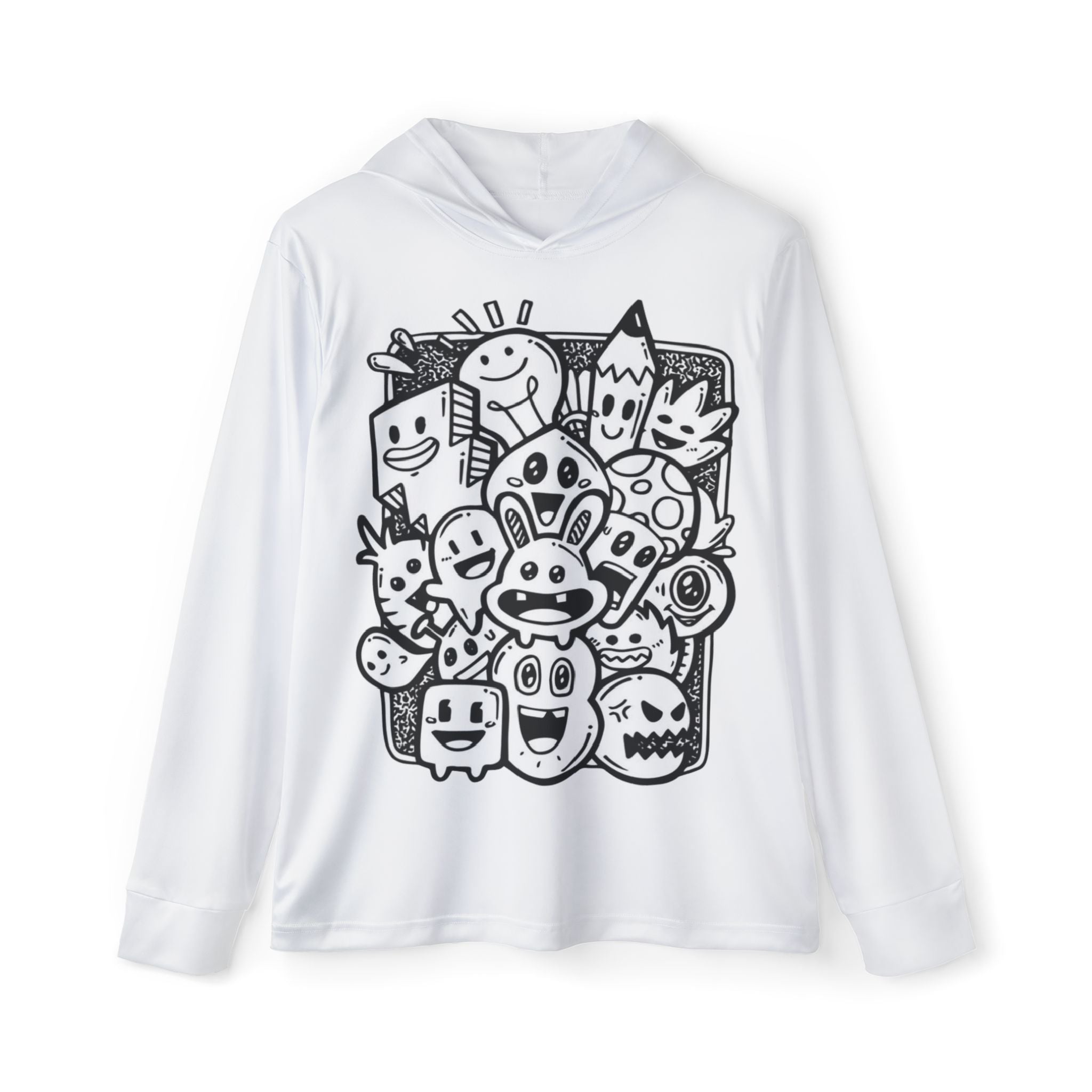 Product features - 100% polyester for durability and shape retention - Moisture-wicking fabric that keeps skin dry during activity - Extra-lightweight material (4.13 oz/yd² / 140 g/m²) for comfortable layering - Built-in sun protection with UPF 50+ - Assembled in the USA; printed size and care label inside hood seam