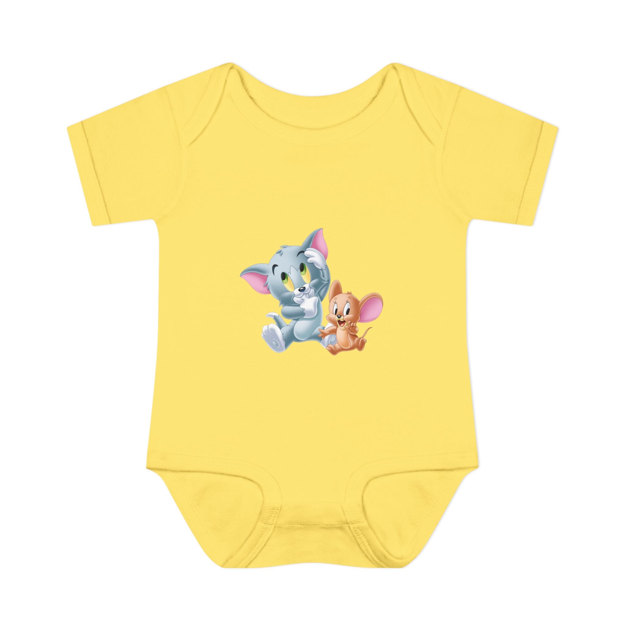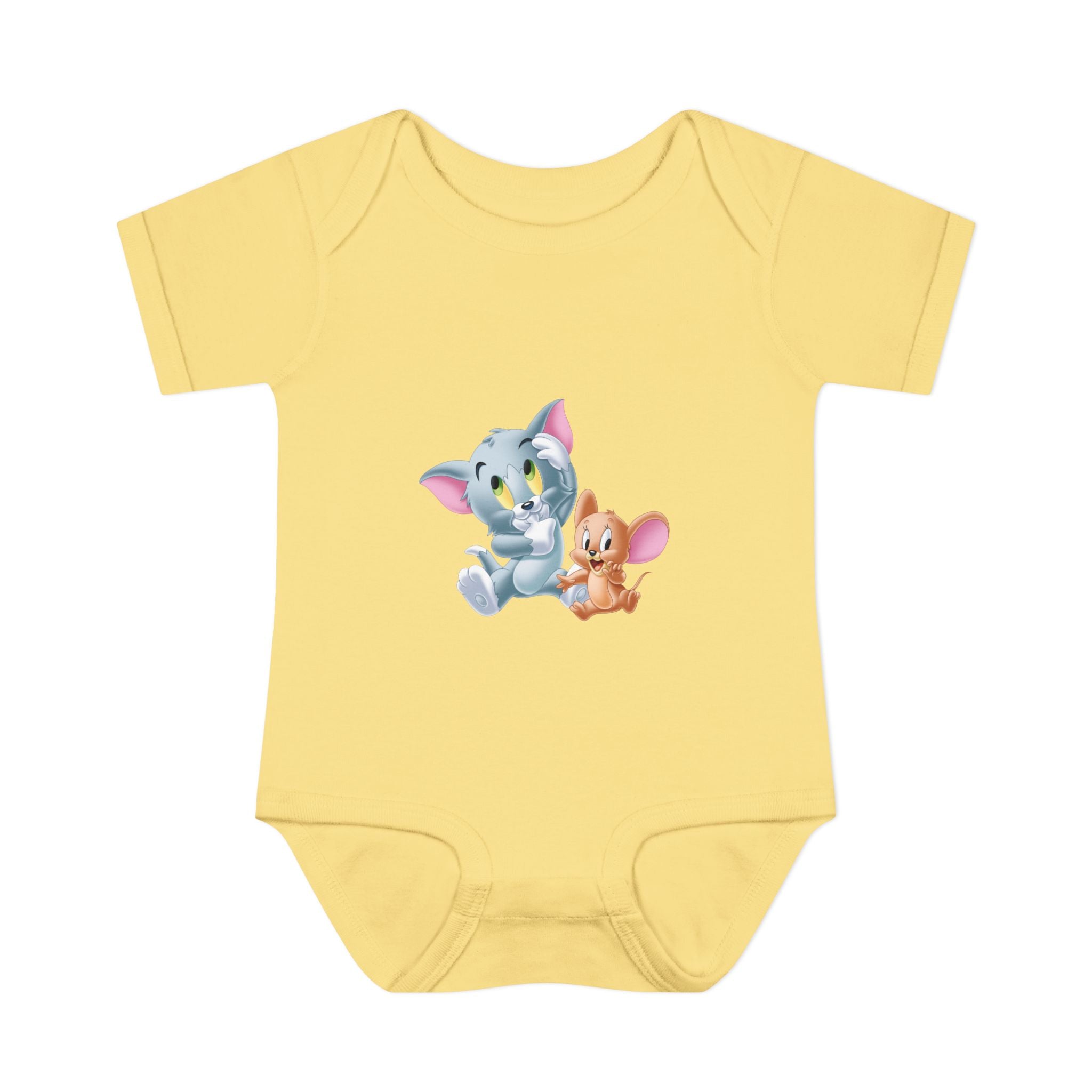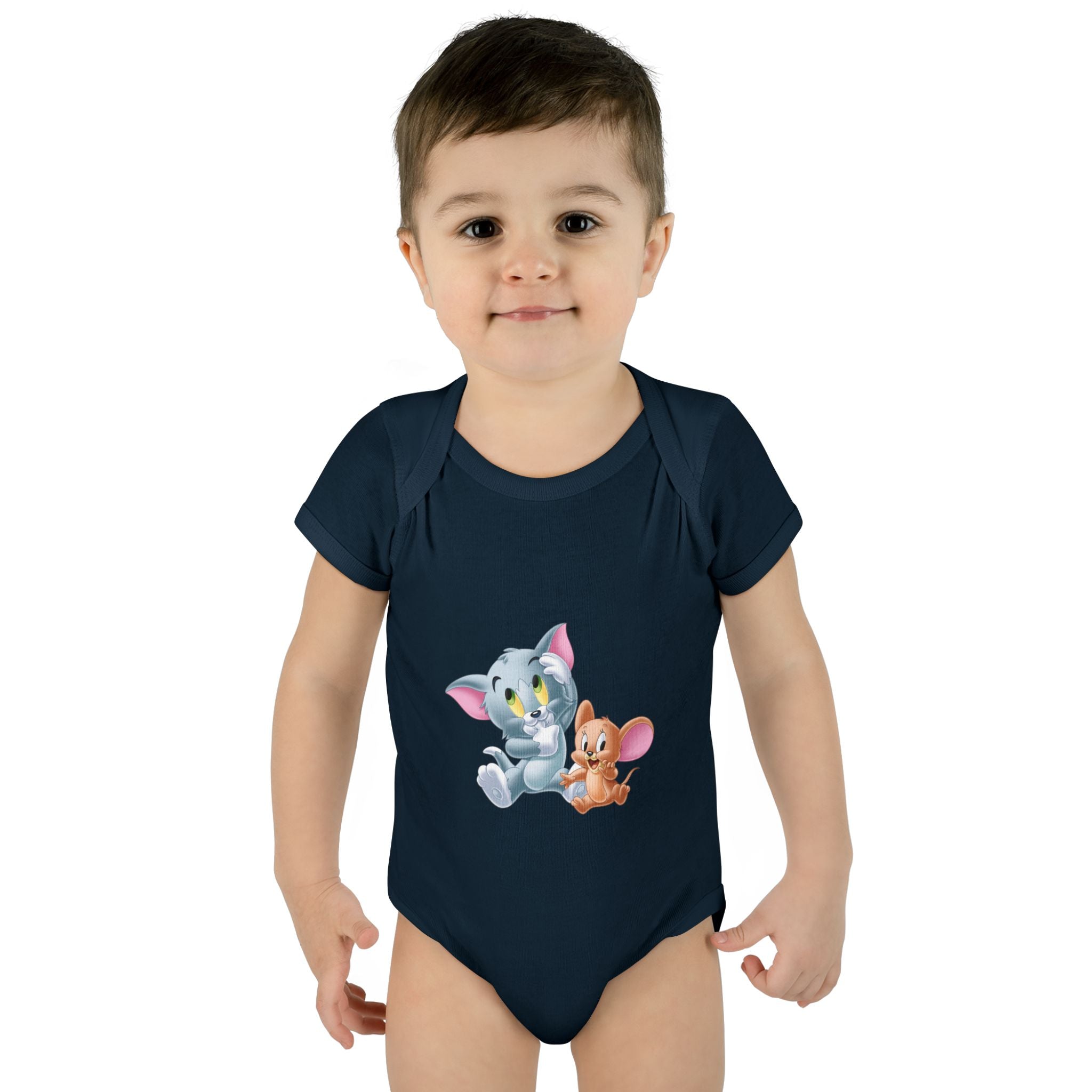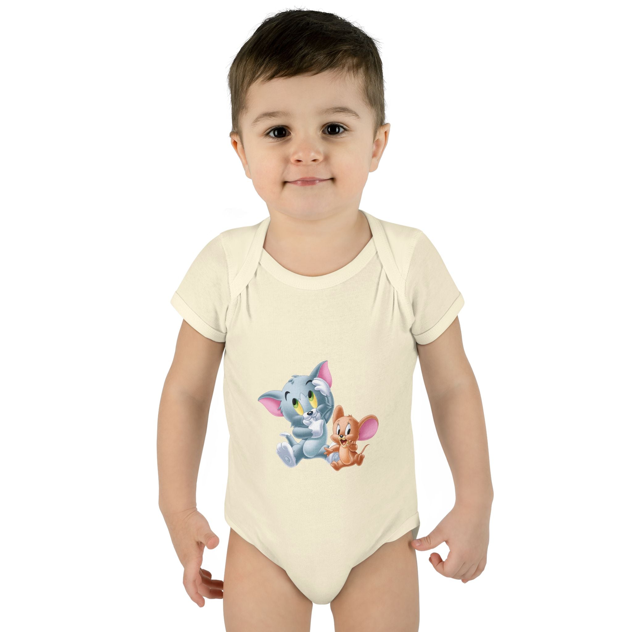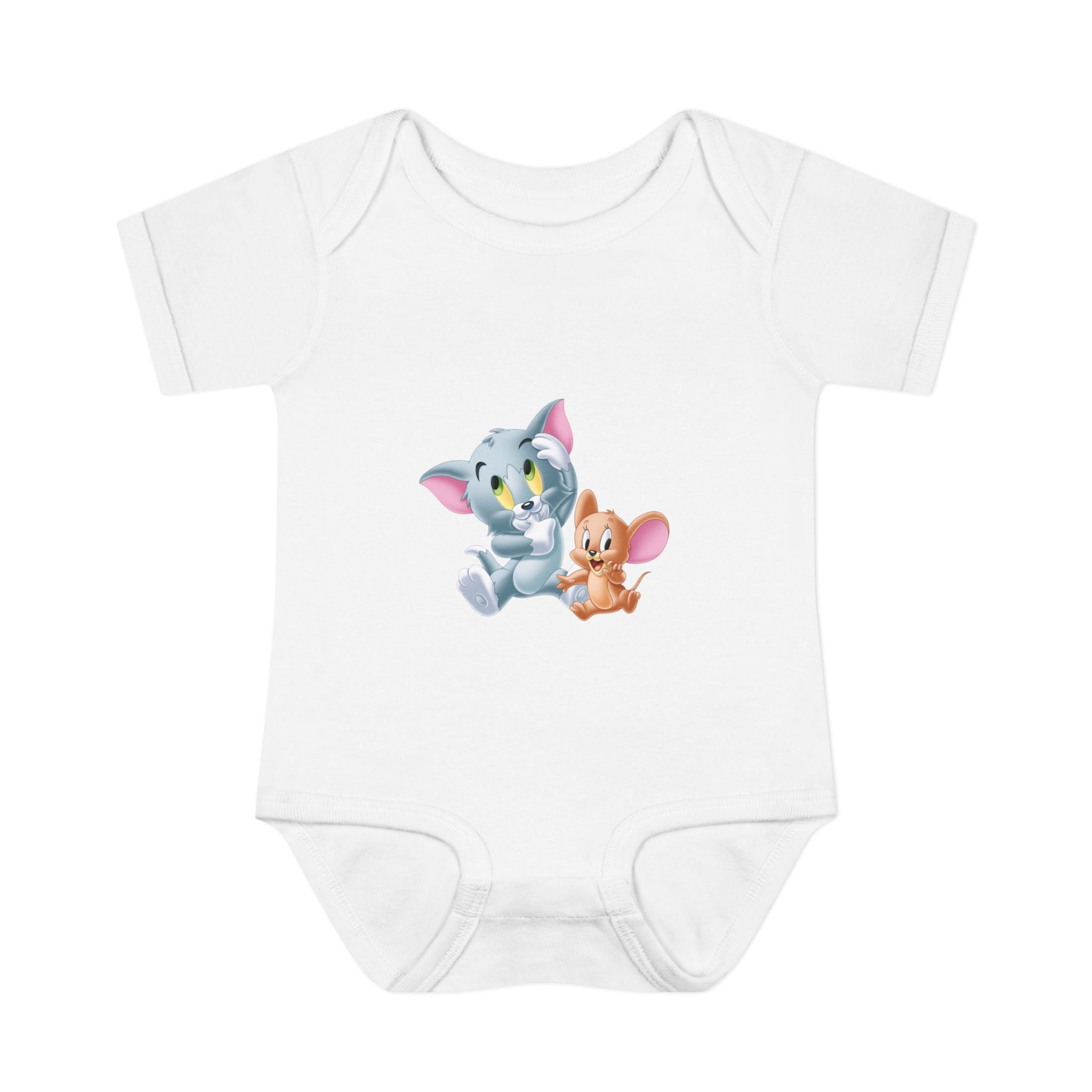 Soft cotton against newborn skin, with a tiny, cheerful illustration right at the chest. This infant bodysuit feels light and breathable, shaped by gentle side seams and a lap shoulder that makes dressing and late-night changes easier. The three-snap closure stays smooth and comfortable, while ribbed binding at the neck, sleeves and legs keeps the shape wash after wash. A tear-away label and printed neck tag eliminate scratchy seams so baby stays calm and cozy. Use it for everyday cuddles, baby photos, or quiet mornings at home — it settles into family routines without fuss.