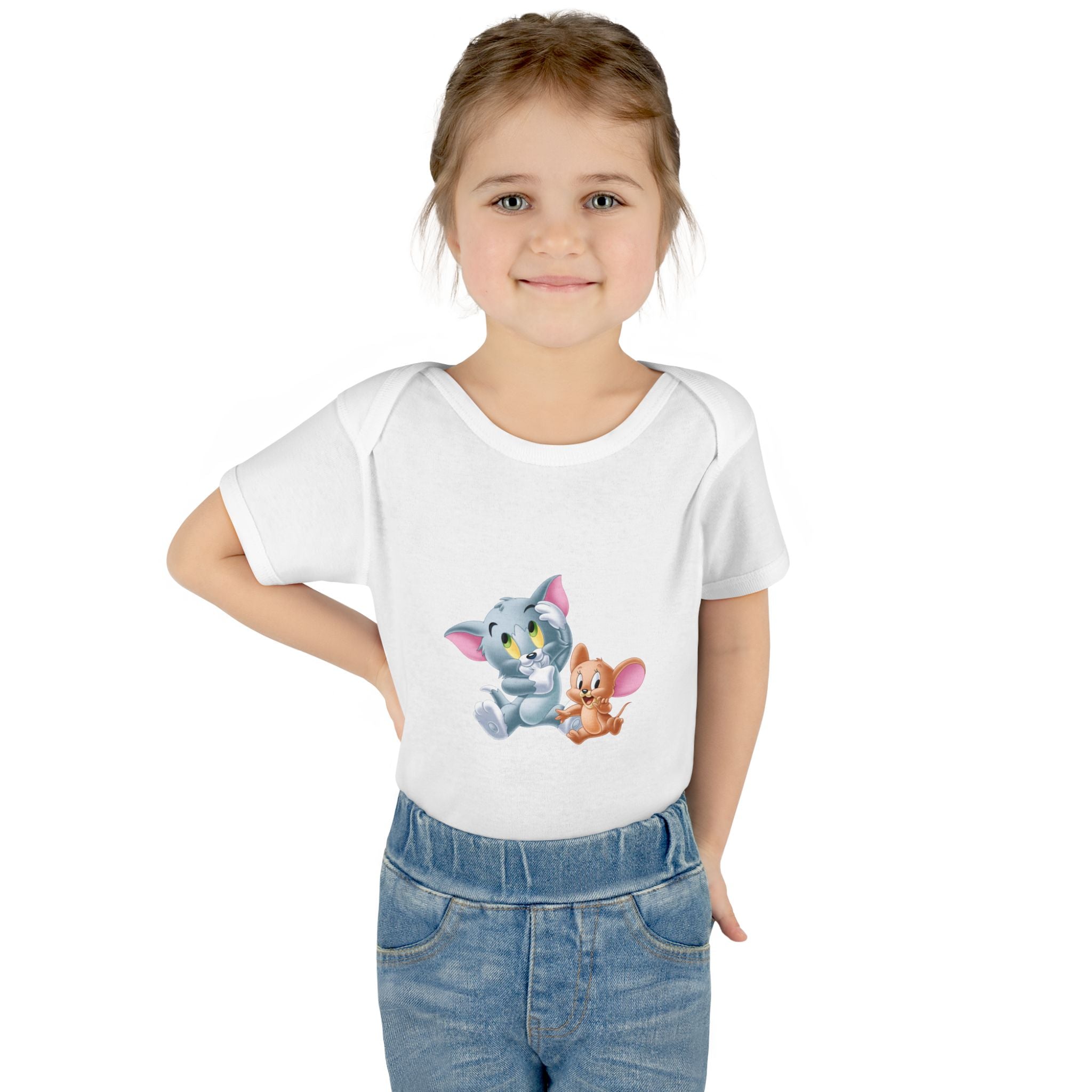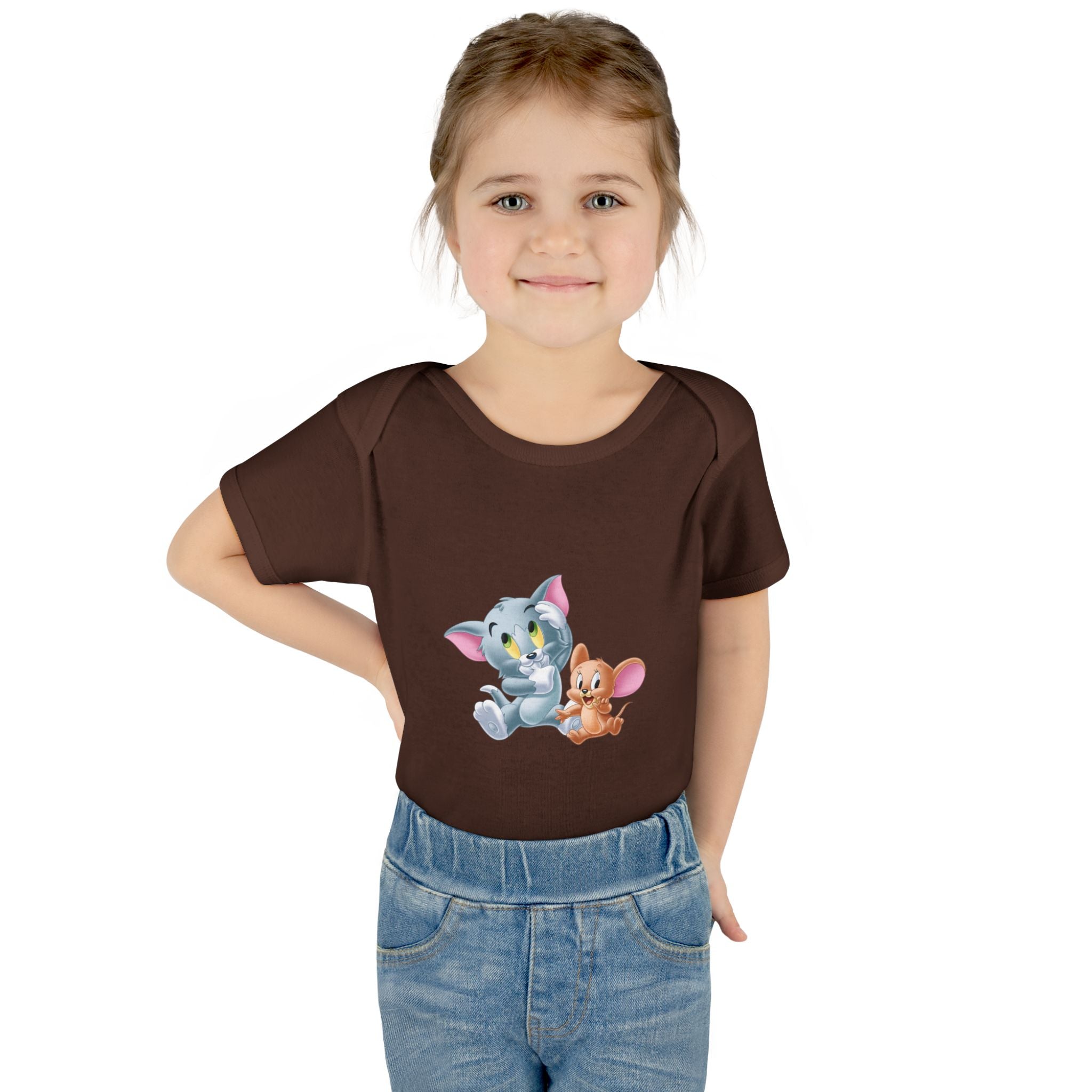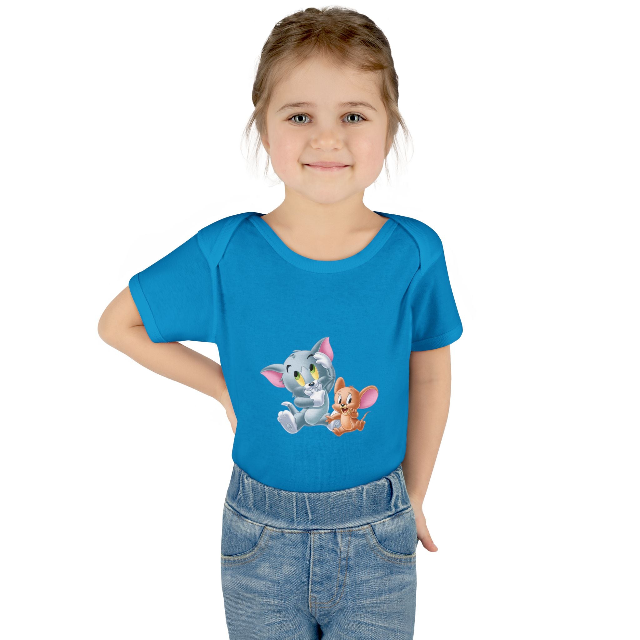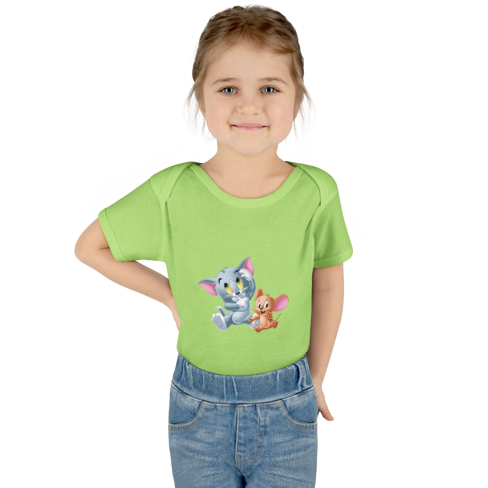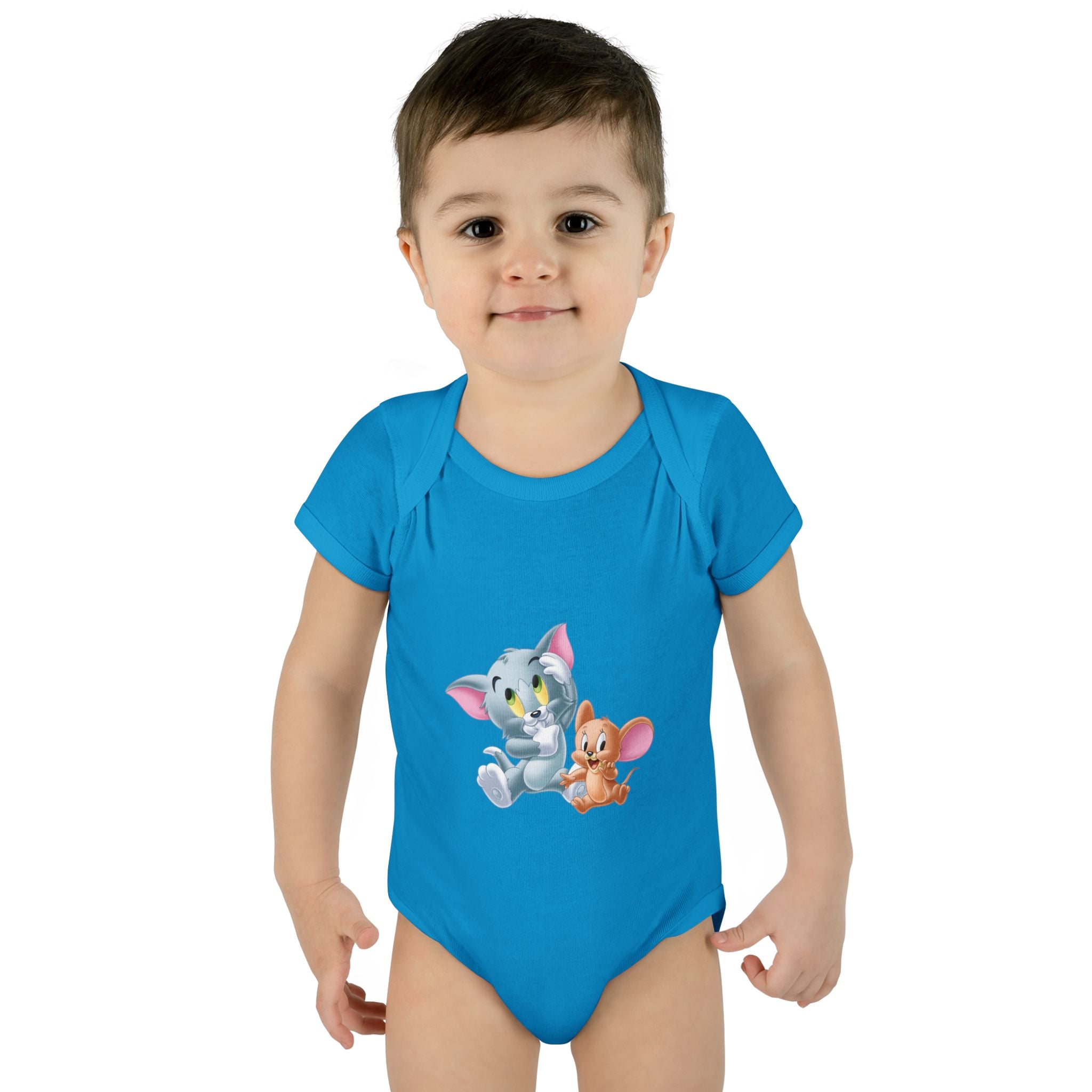 Soft cotton against newborn skin, with a tiny, cheerful illustration right at the chest. This infant bodysuit feels light and breathable, shaped by gentle side seams and a lap shoulder that makes dressing and late-night changes easier. The three-snap closure stays smooth and comfortable, while ribbed binding at the neck, sleeves and legs keeps the shape wash after wash. A tear-away label and printed neck tag eliminate scratchy seams so baby stays calm and cozy. Use it for everyday cuddles, baby photos, or quiet mornings at home — it settles into family routines without fuss.