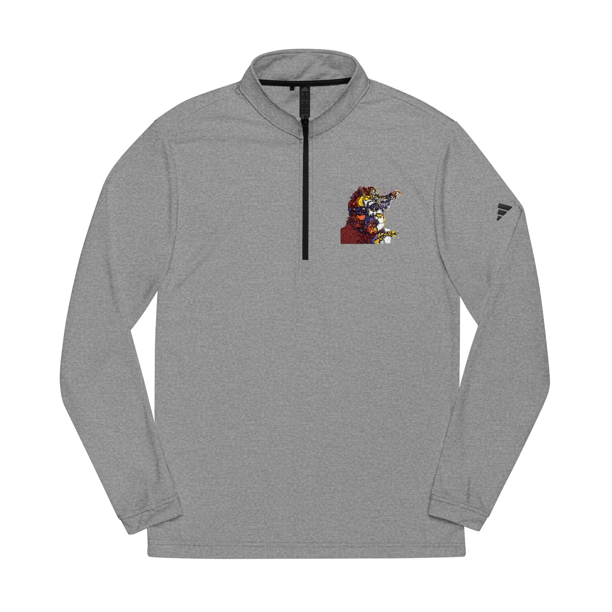 A lightweight, recycled-performance quarter-zip that moves from early-morning golf to long drives and sunny afternoons with quiet confidence. The relaxed cut layers easily over tees or polos; the self-mock collar shields the neck while the hydrophilic finish wicks sweat so you stay cool and dry. UPF 50+ sun protection keeps you covered on bright days, and a subtle contrast adidas mark on the sleeve gives a sporty, elevated touch. Embroidered artwork on the chest adds a personal, textured focal point that reads like a small statement rather than loud branding. Built from certified recycled fibers, it feels breathable at 6.1 oz/yd² and wears like a well-loved go-to for adult wardrobes that value performance with thoughtful details.
