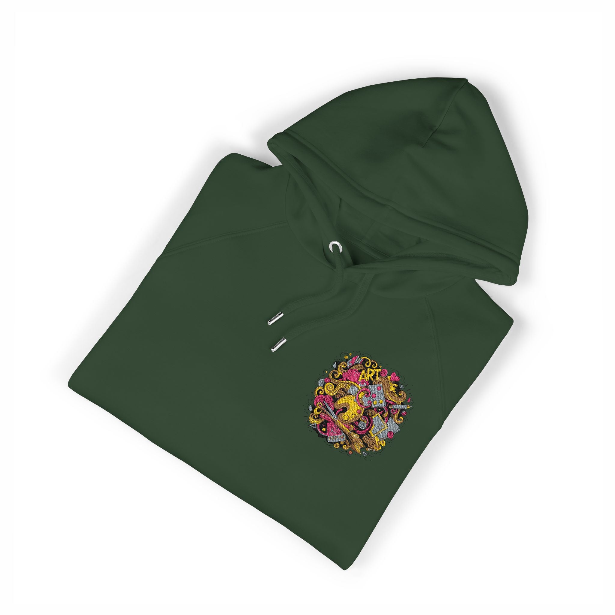 Product features - 100% organic cotton outer with brushed lining for warmth and softness - Raglan sleeves and regular fit for relaxed mobility - Small embroidered chest motif for subtle, colorful detail - Eco-certified materials (GOTS, GRS, OCS, OEKO-TEX) and PETA-approved vegan - Jersey-lined hood, drawstrings with metal eyelets, and 1x1 ribbed cuffs/hem