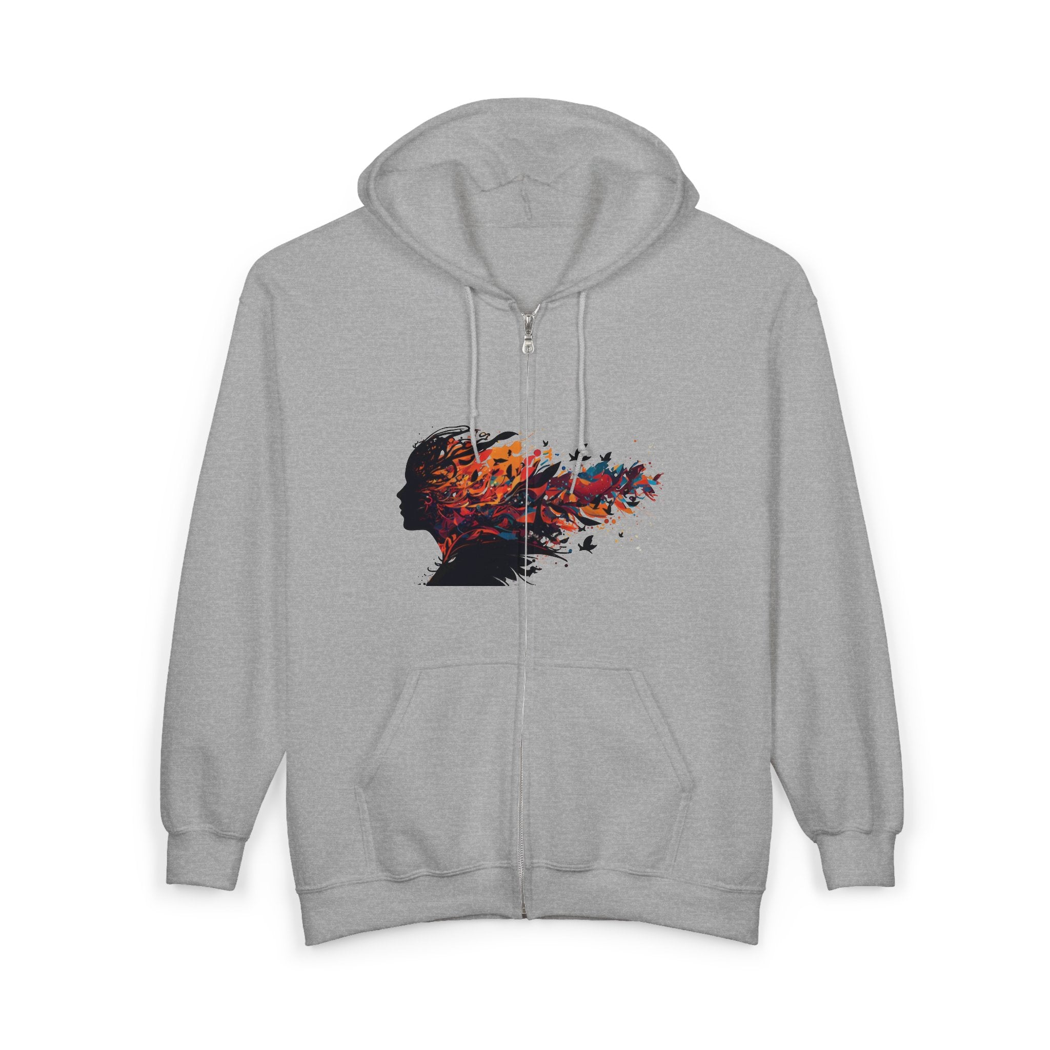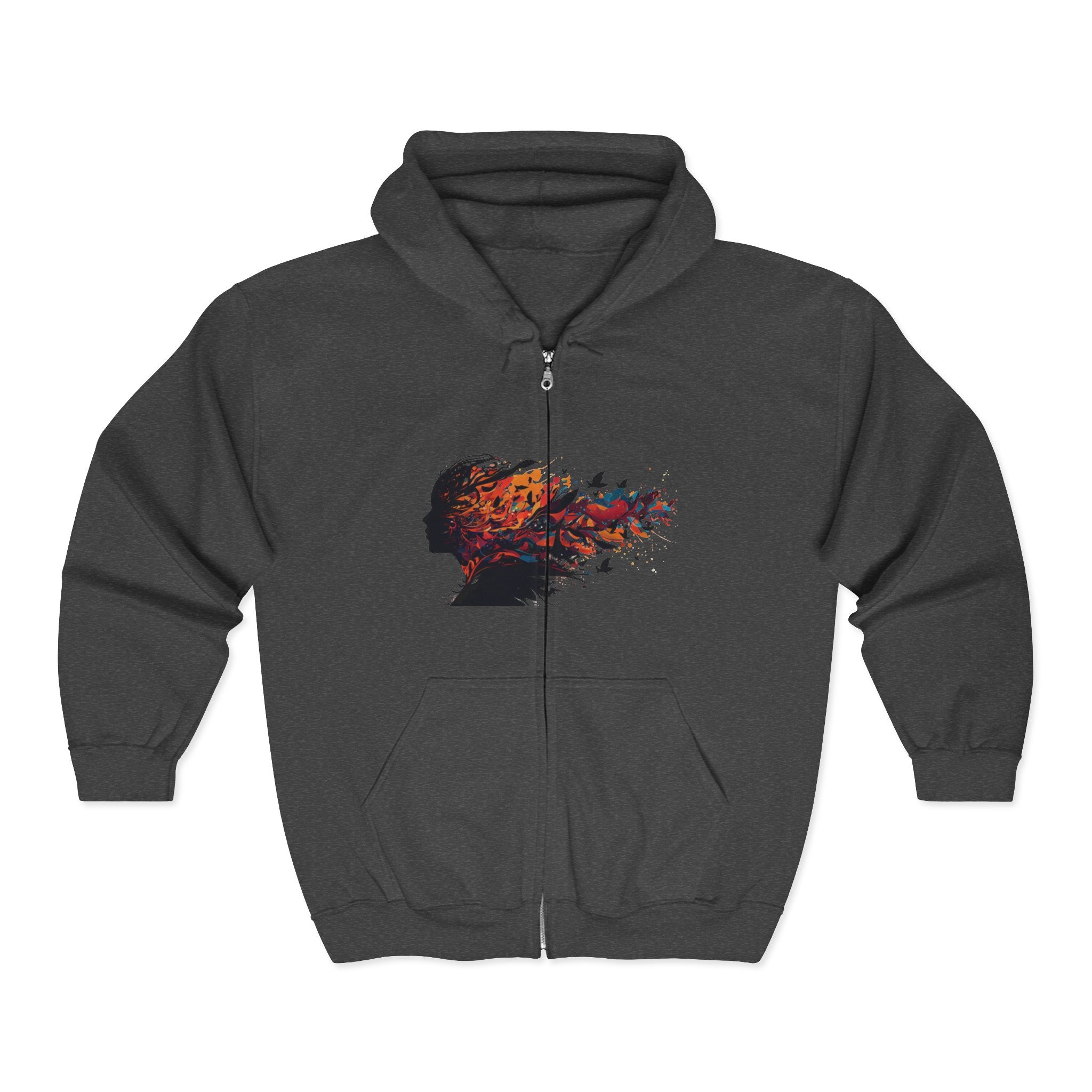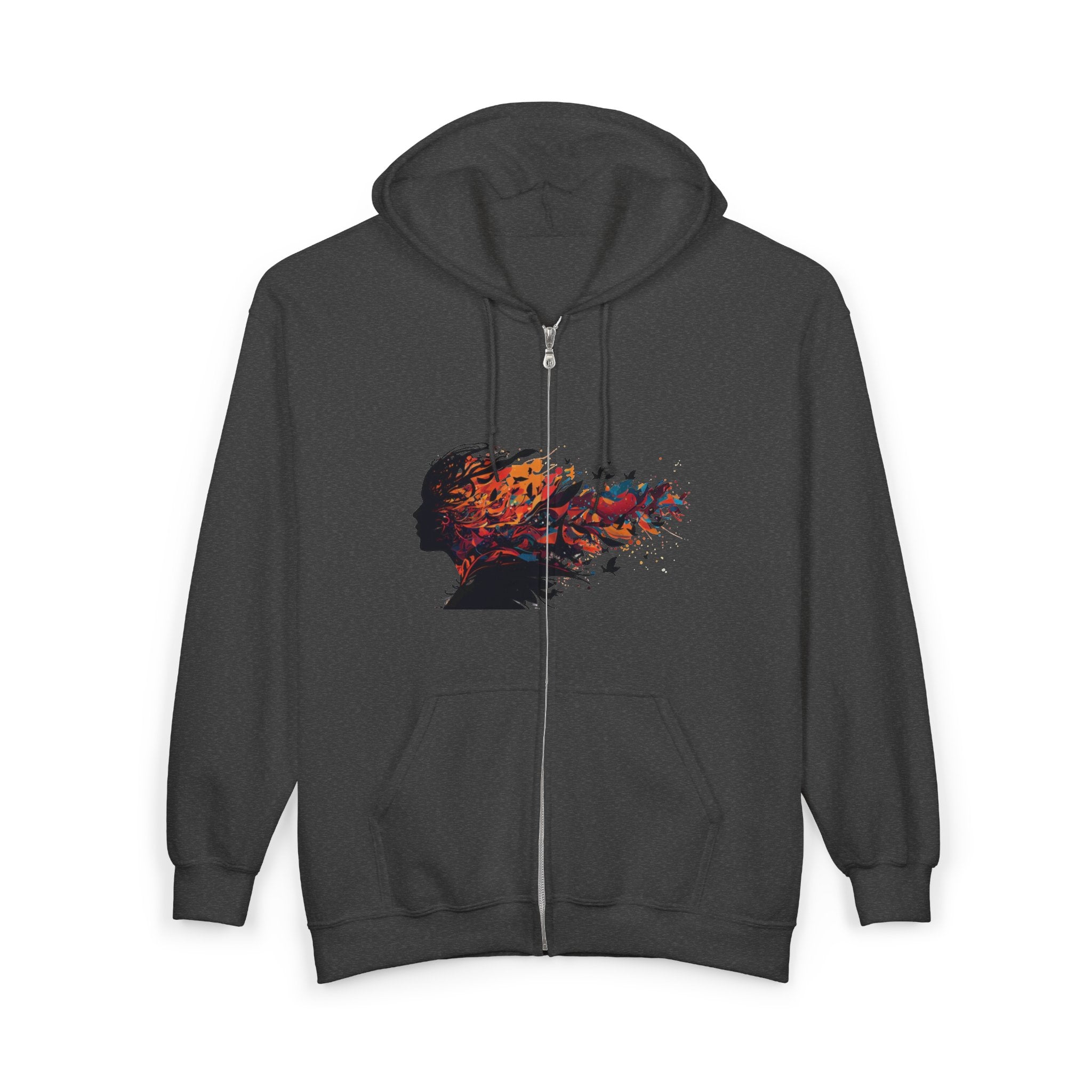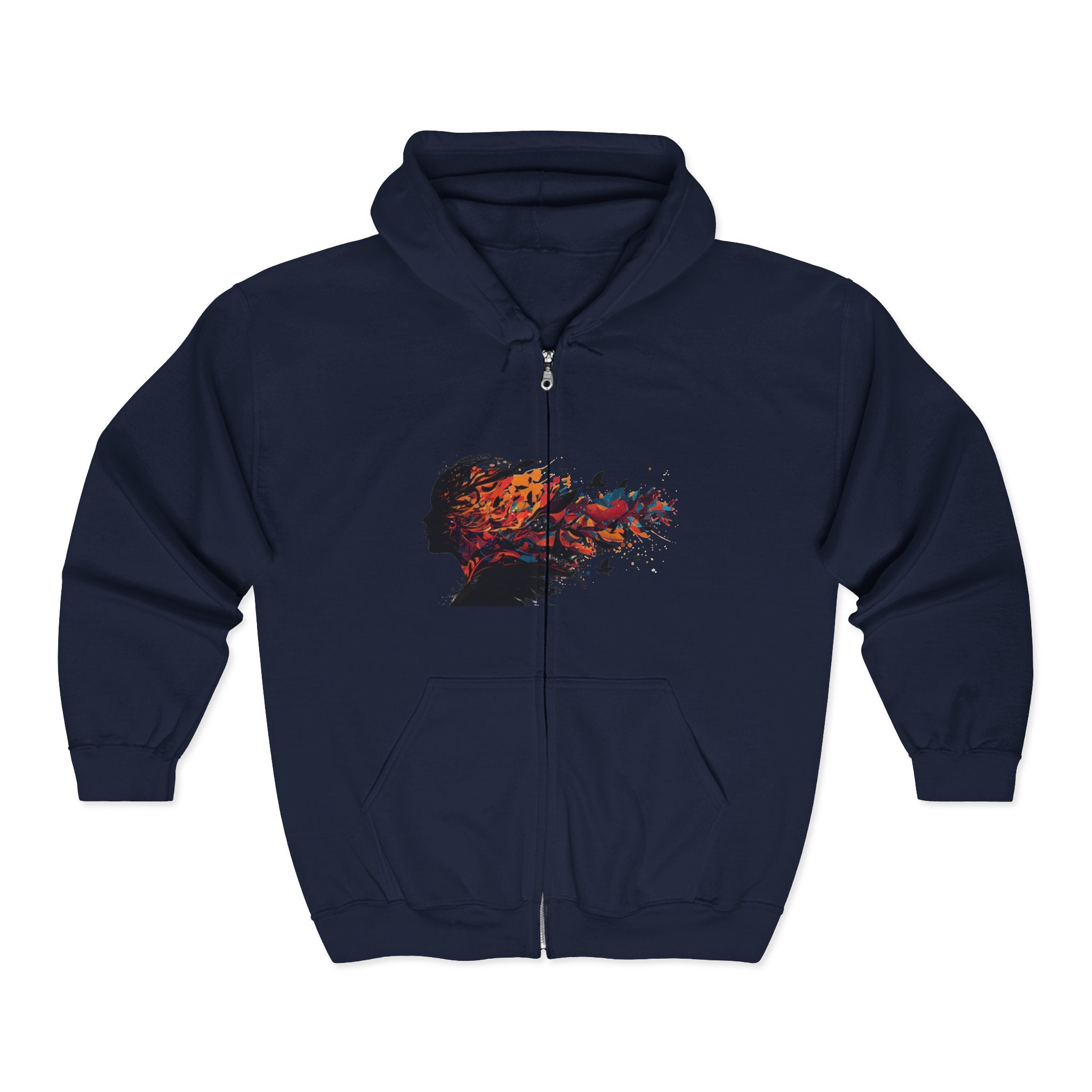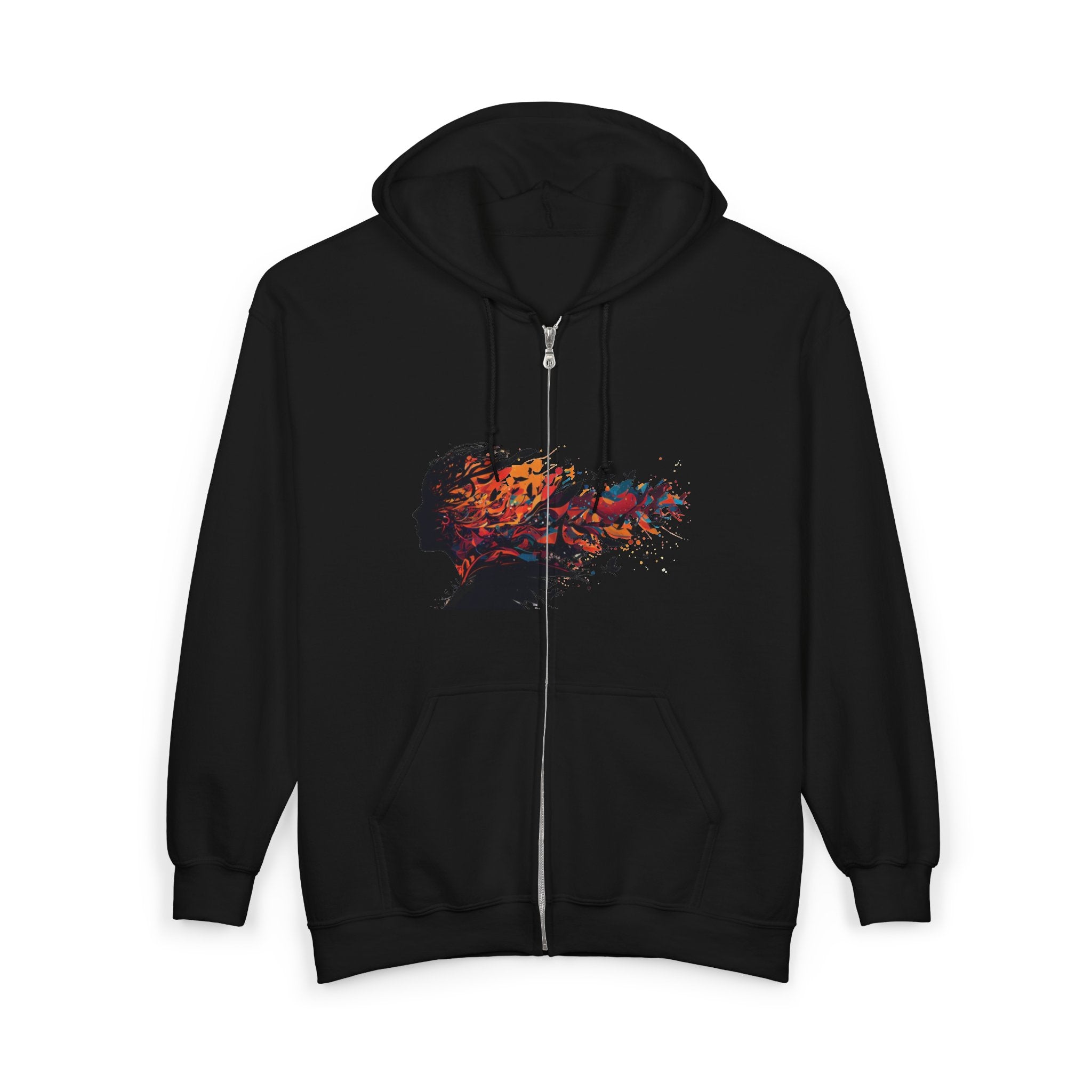 This zip-up hoodie carries a quiet, cinematic energy — a small burst of painterly color centered on a deep black canvas. Soft yet substantial, it drapes with a classic fit and a knit-together construction that feels smooth against the skin. The adjustable hood and roomy front pockets make it a go-to layer for late-night walks, studio sessions, or coffee runs when you want comfort without losing an artistic edge. Embroidery options on the chest add a tactile detail, while subtle wrist prints give it a handcrafted touch. Wear it solo over a tee or layered under a jacket; it settles into the pace of your day and quietly amplifies your personal style.