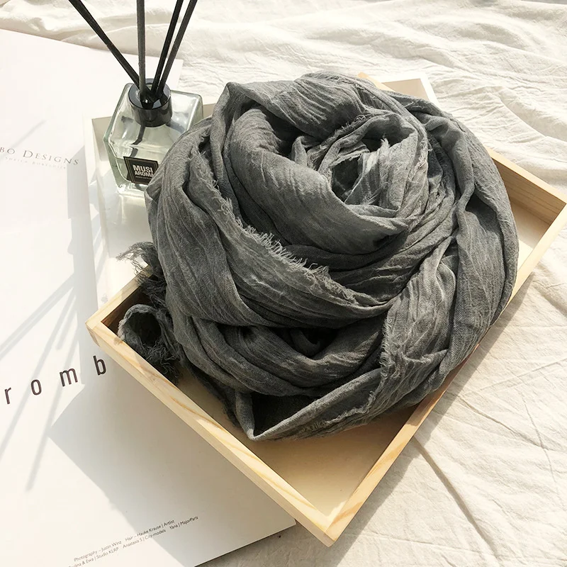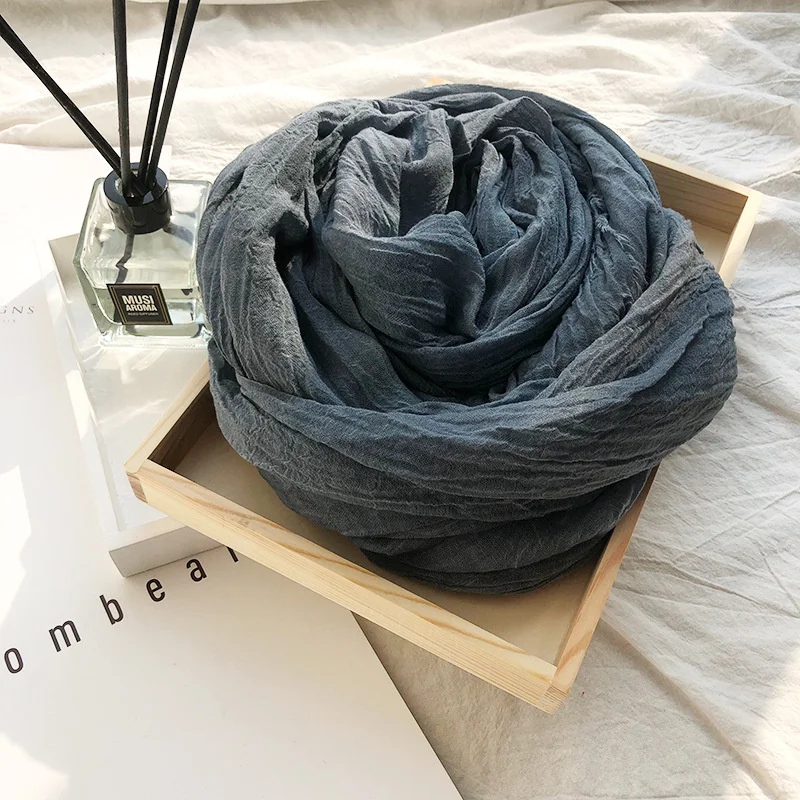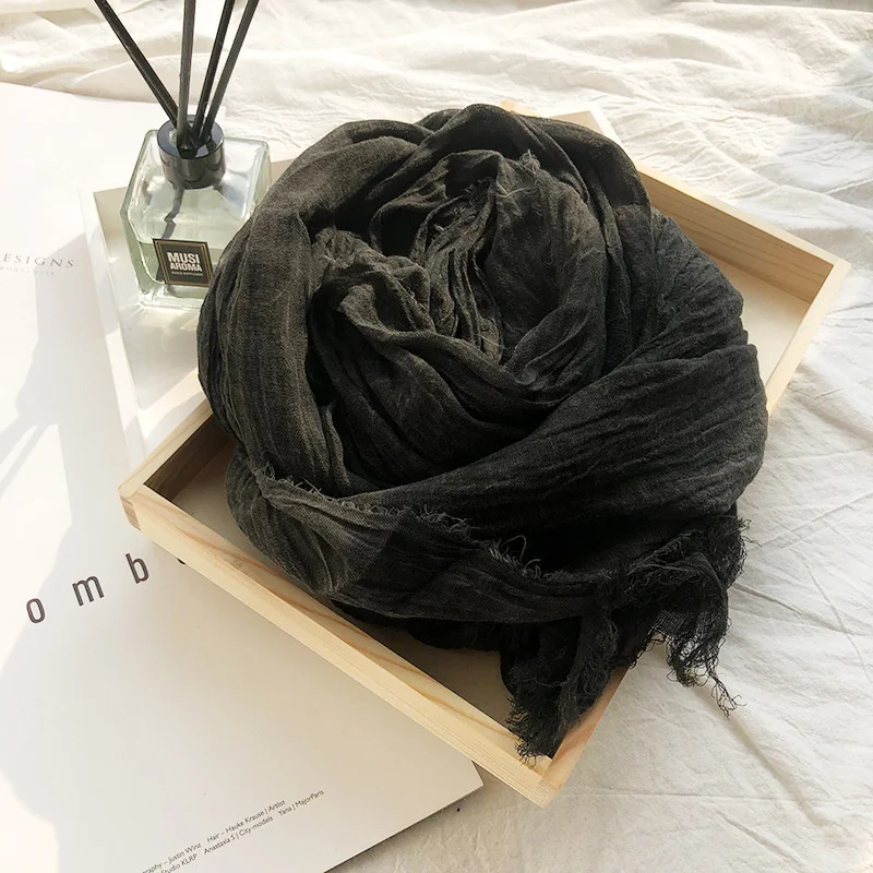 Japanese Style Unisex Cotton Linen Scarf Tie-dyed Autumn Winter Men Scarves Wraps Korean Fashion Men's Bufandas Male Accessories