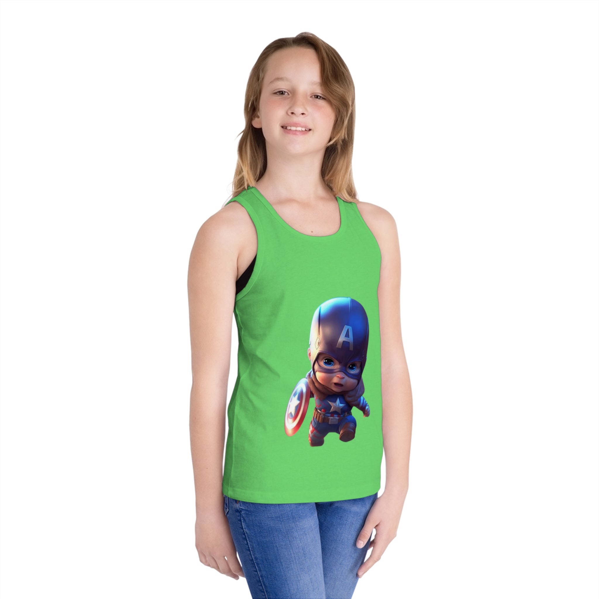 A lightweight, soft jersey tank designed for active kids who need breathable comfort and easy movement. The smooth, combed cotton feels gentle against the skin, while the retail fit and side seams keep the shape through play and washes. The ribbed collar and armholes stretch on and snap back for a neat fit, and the tear-away label prevents irritation. A simple, clean canvas for subtle branding or a small chest motif — casual, wearable, and built to move with a child all day.