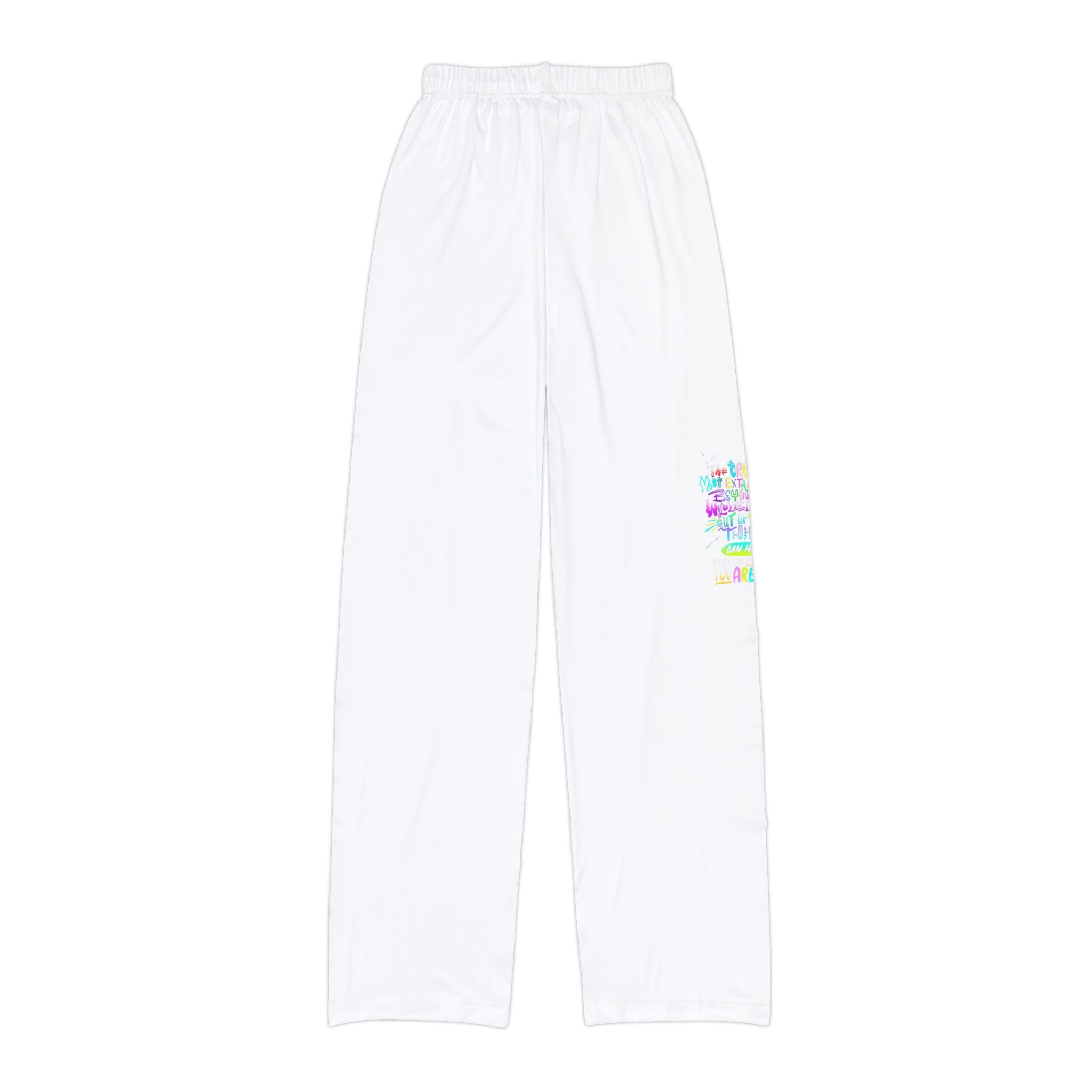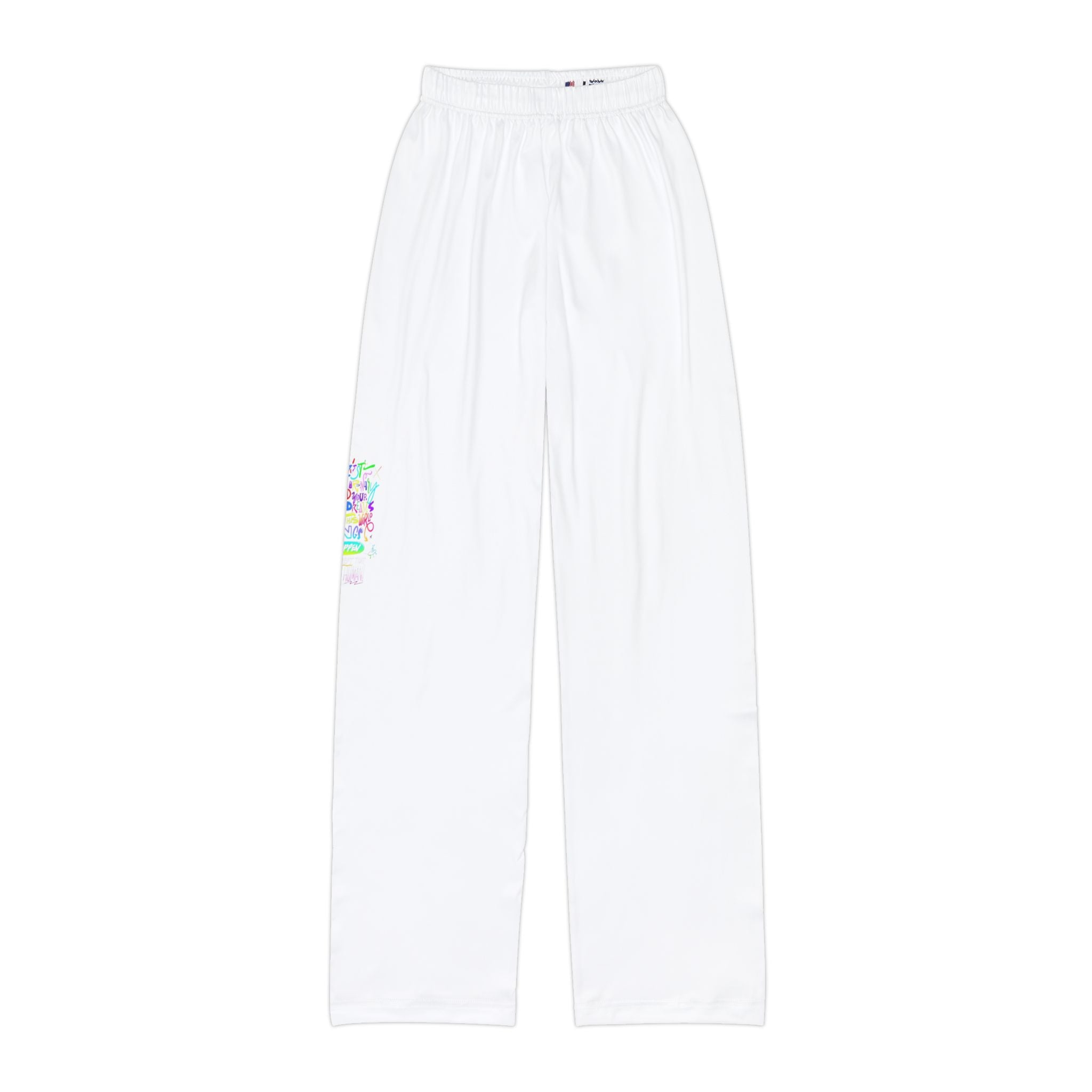 Lightweight lounge pants crafted for kids who like to move, lounge, and play without fuss. The brushed polyester feels soft against the skin and keeps its shape through washes and adventures. A gentle elastic waistband and smooth, breathable fabric let little ones relax at home, in the car, or after sports practice. Subtle printed care and size info inside the waistband keeps tags from irritating the skin. Clean white prints and stitch-matched seams let a small, colorful logo sit low on the leg for an understated, sporty look.