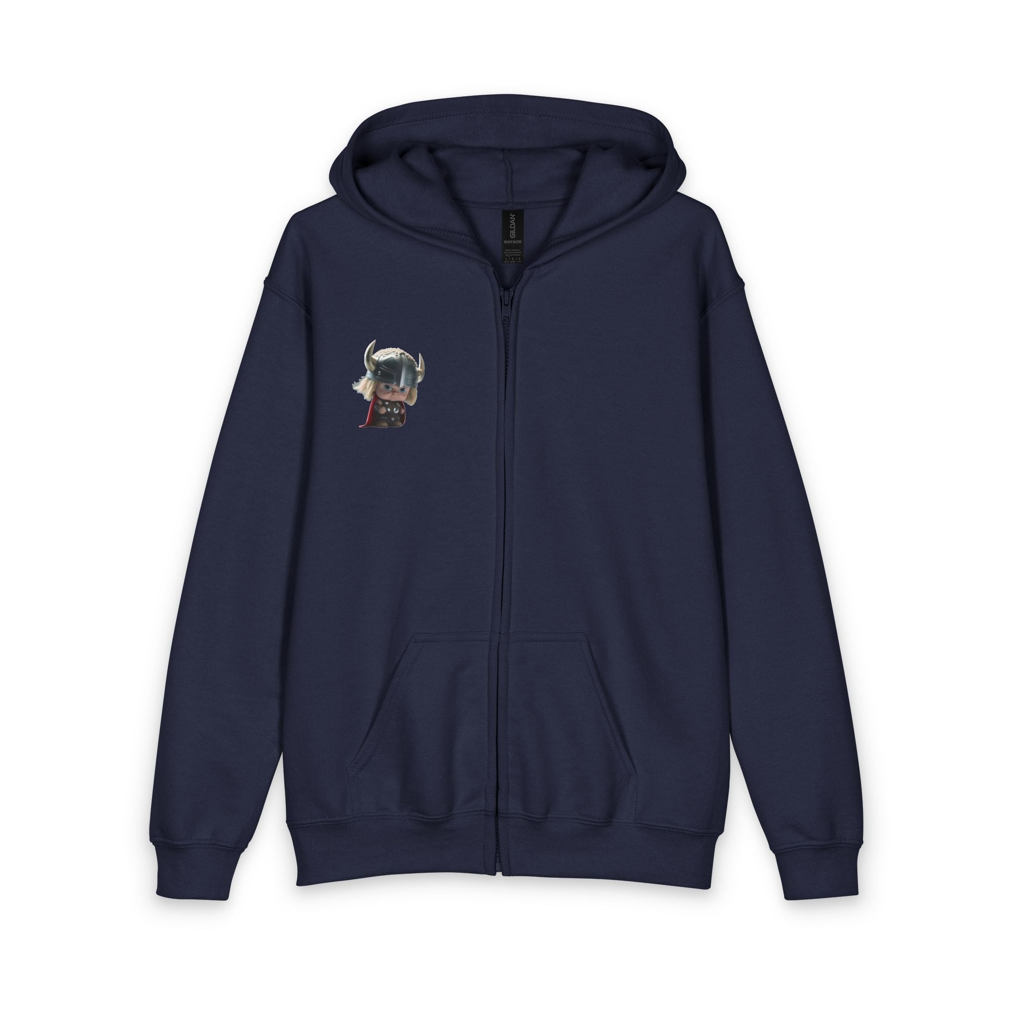 Product features - 50% cotton / 50% polyester medium-weight (8 oz/yd²) for durability and smooth printability - Full-length plastic zipper with matching metal pull for easy on/off - Unlined hood and classic fit for comfortable everyday movement - Front pouch pocket for storage and hand-warming - Tear-away label for itch-free wear