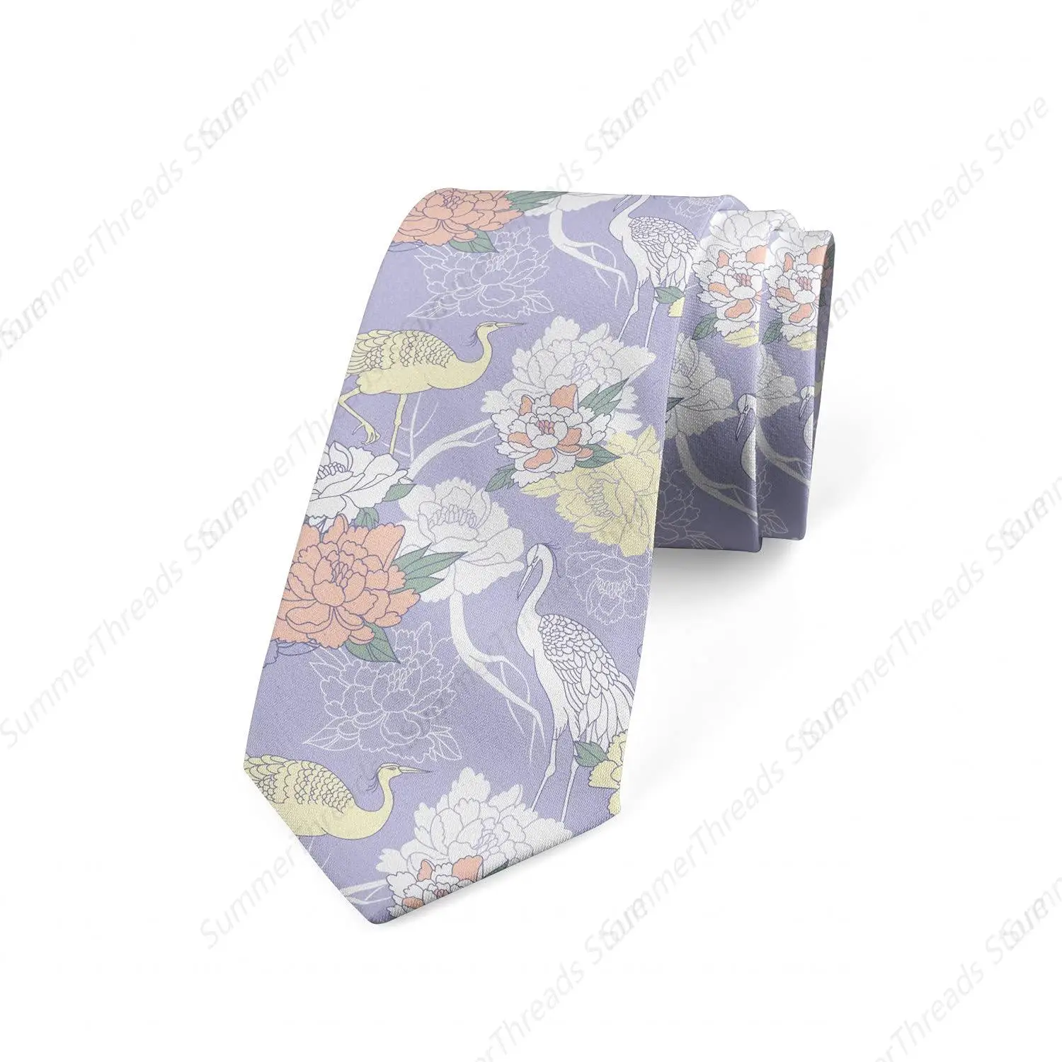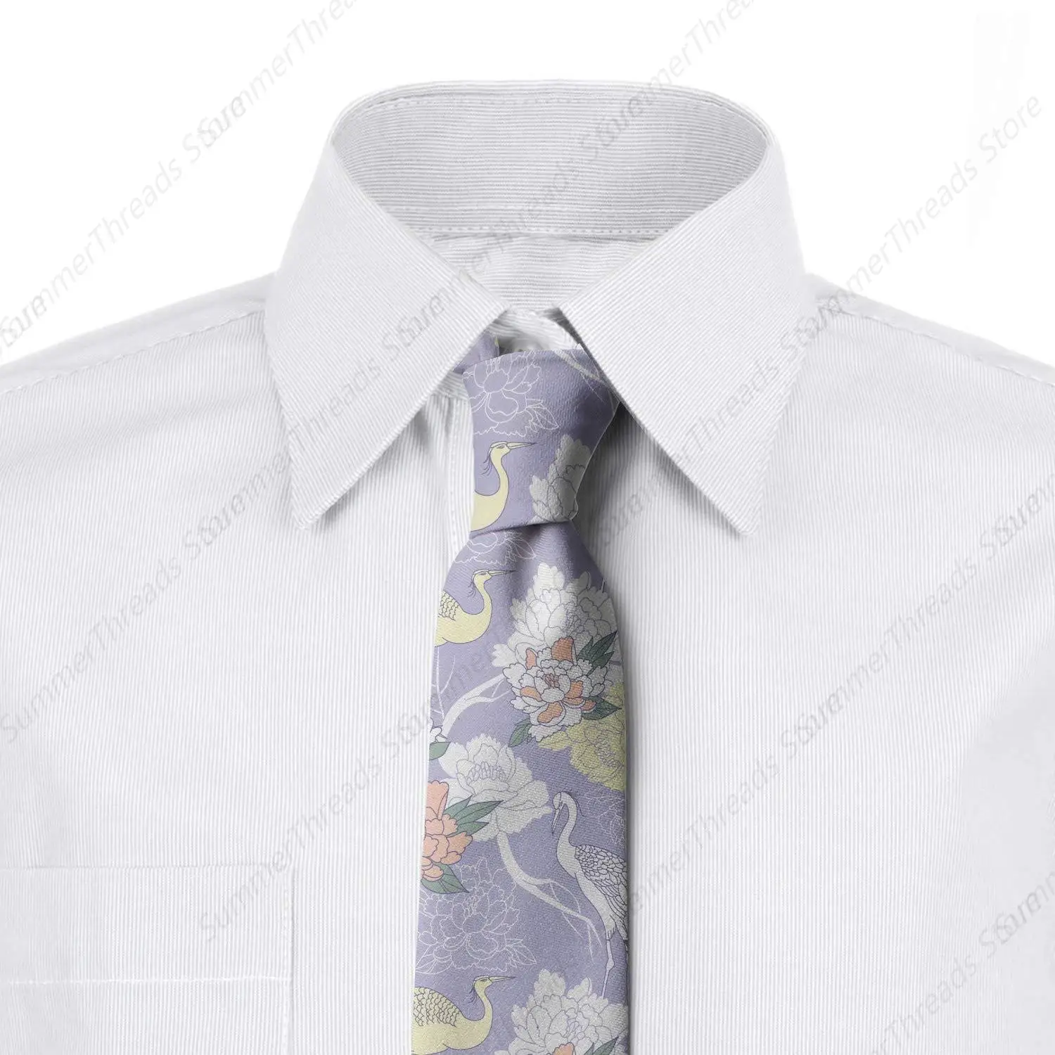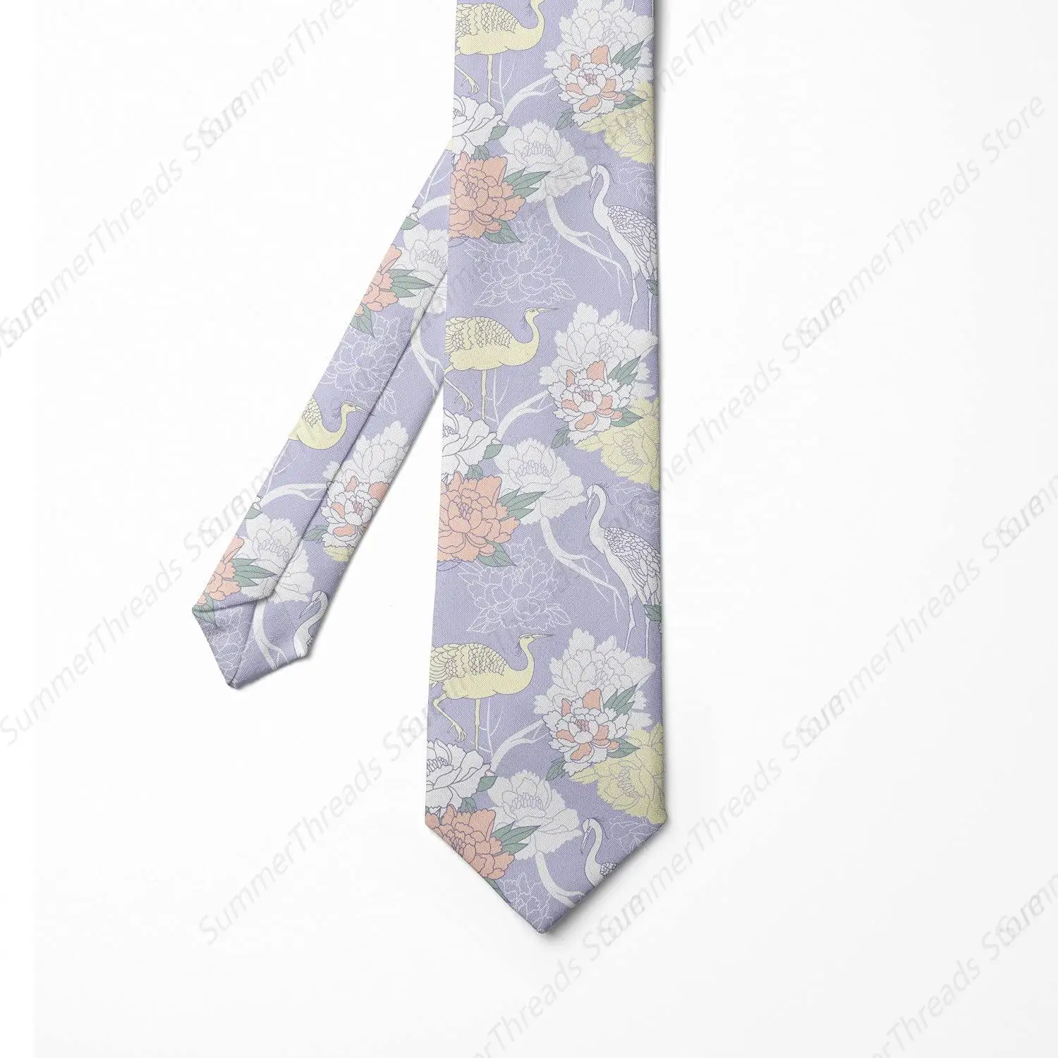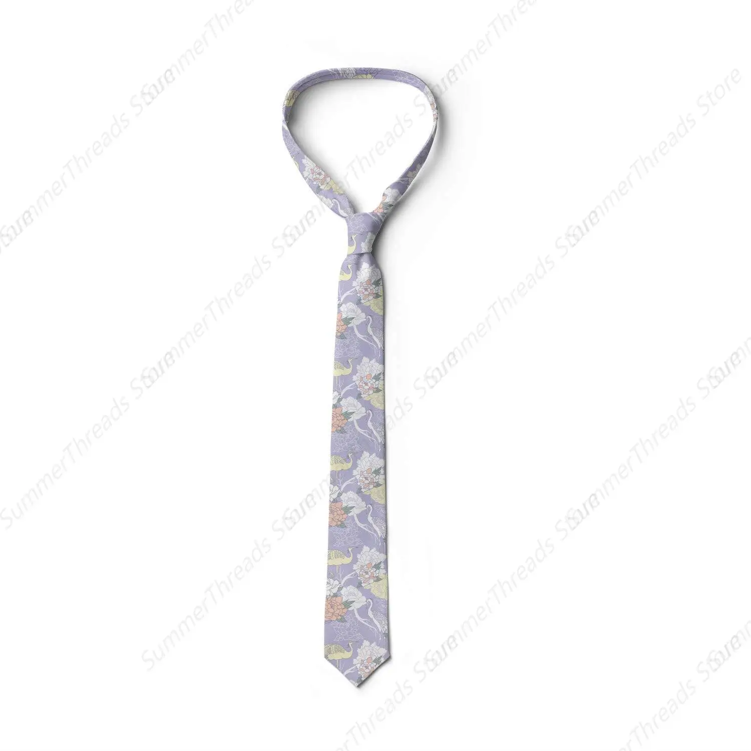 Men's Tie, Lavender Background Oriental Lilac White Ties