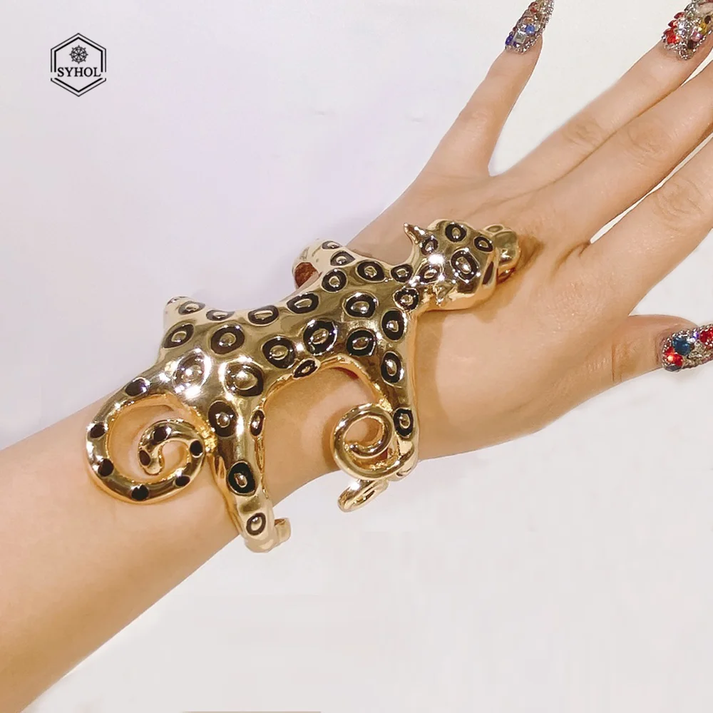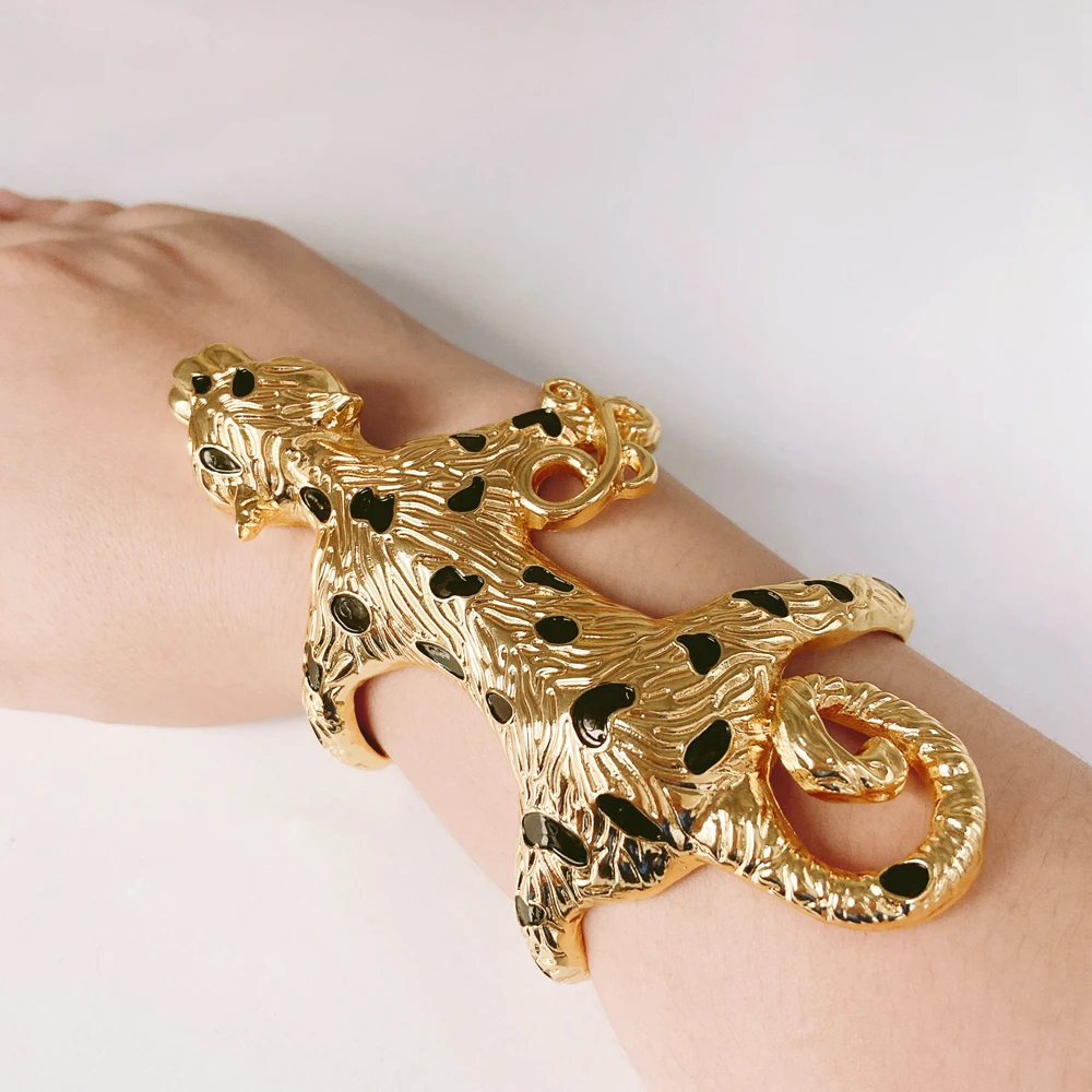 Woman Gold Plate Bangle Fashionable Tiger Shape Round Stripe Big Bangle Adjustable Size Festival Gift Suitable for Party Daily