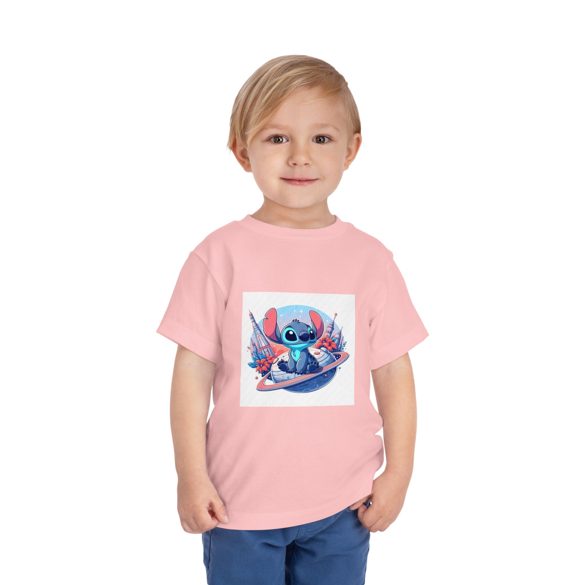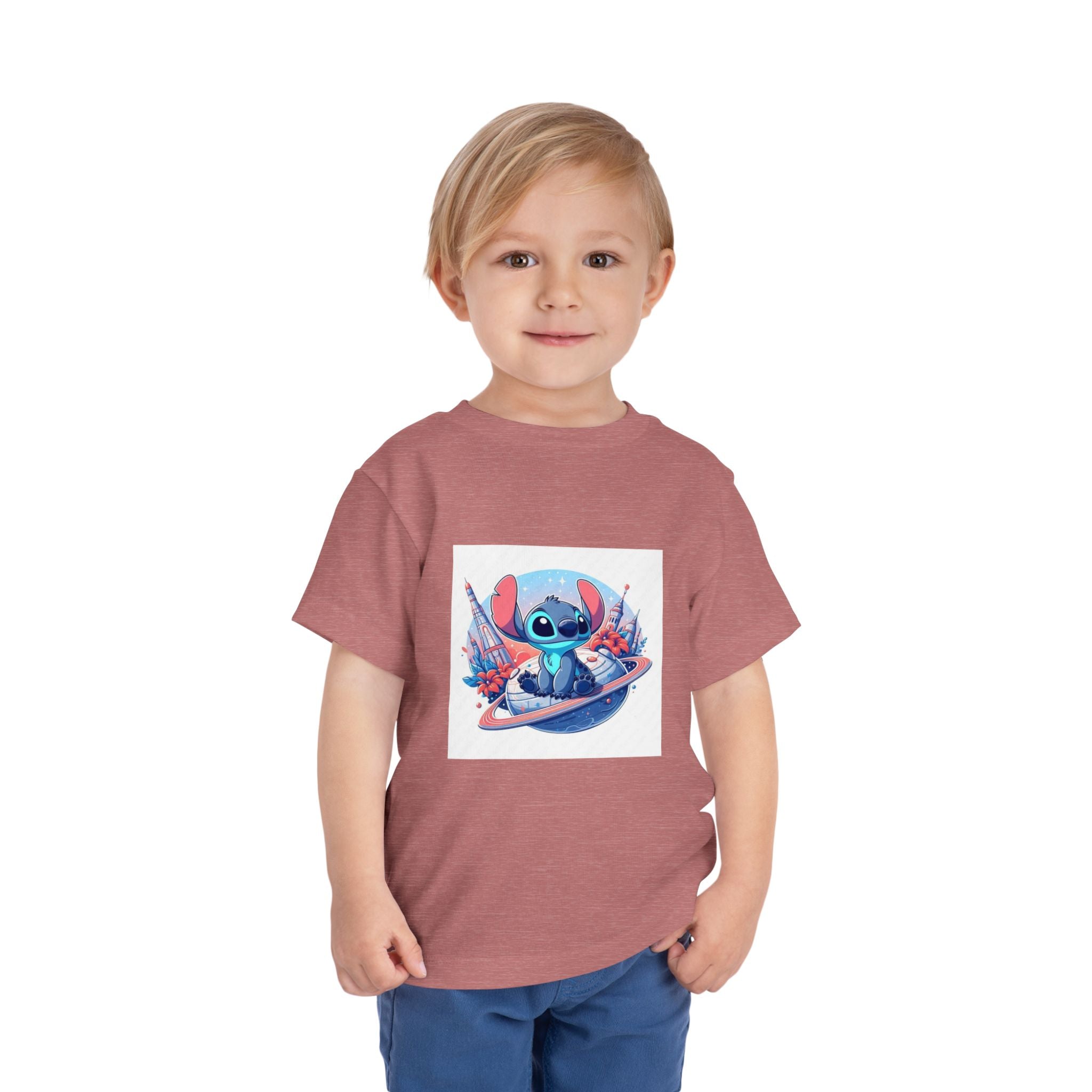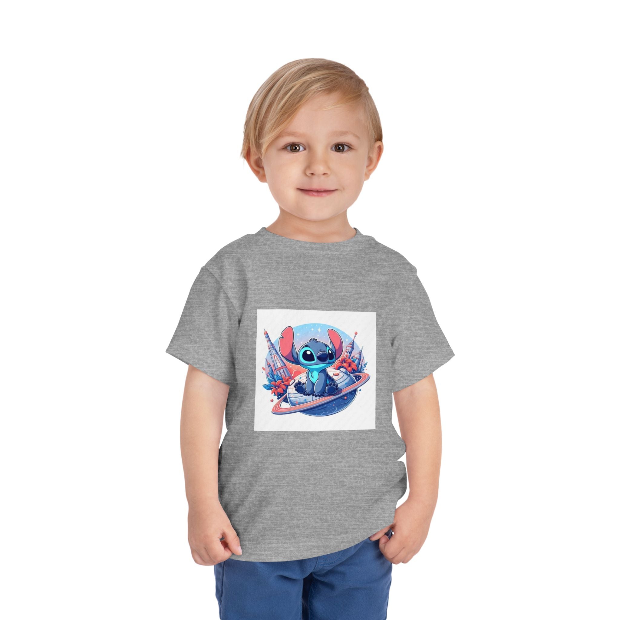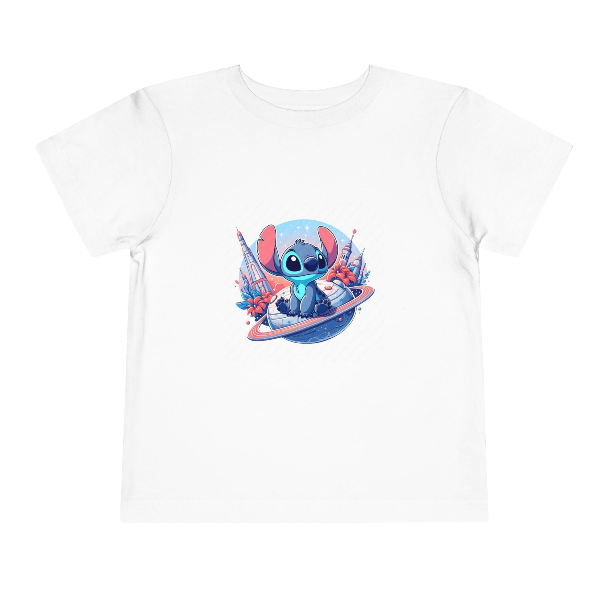 A soft, lightweight toddler tee featuring a whimsical space-themed character illustration. Gentle on sensitive skin, the shirt brings playful color and imagination to everyday wear. Short sleeves and a clean crew neckline keep movement easy for busy little explorers. The small, centered print adds charm without overwhelming the simple white canvas — great for layering under jackets or pairing with playtime shorts. Breathable fabric and a tear-away label mean fewer irritations and more comfortable adventures.