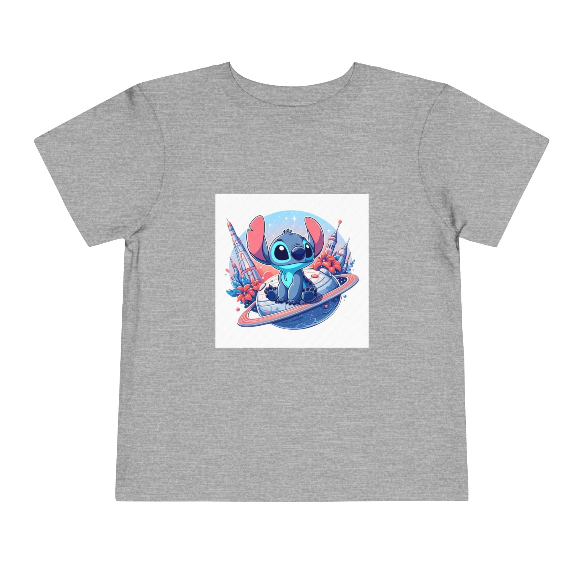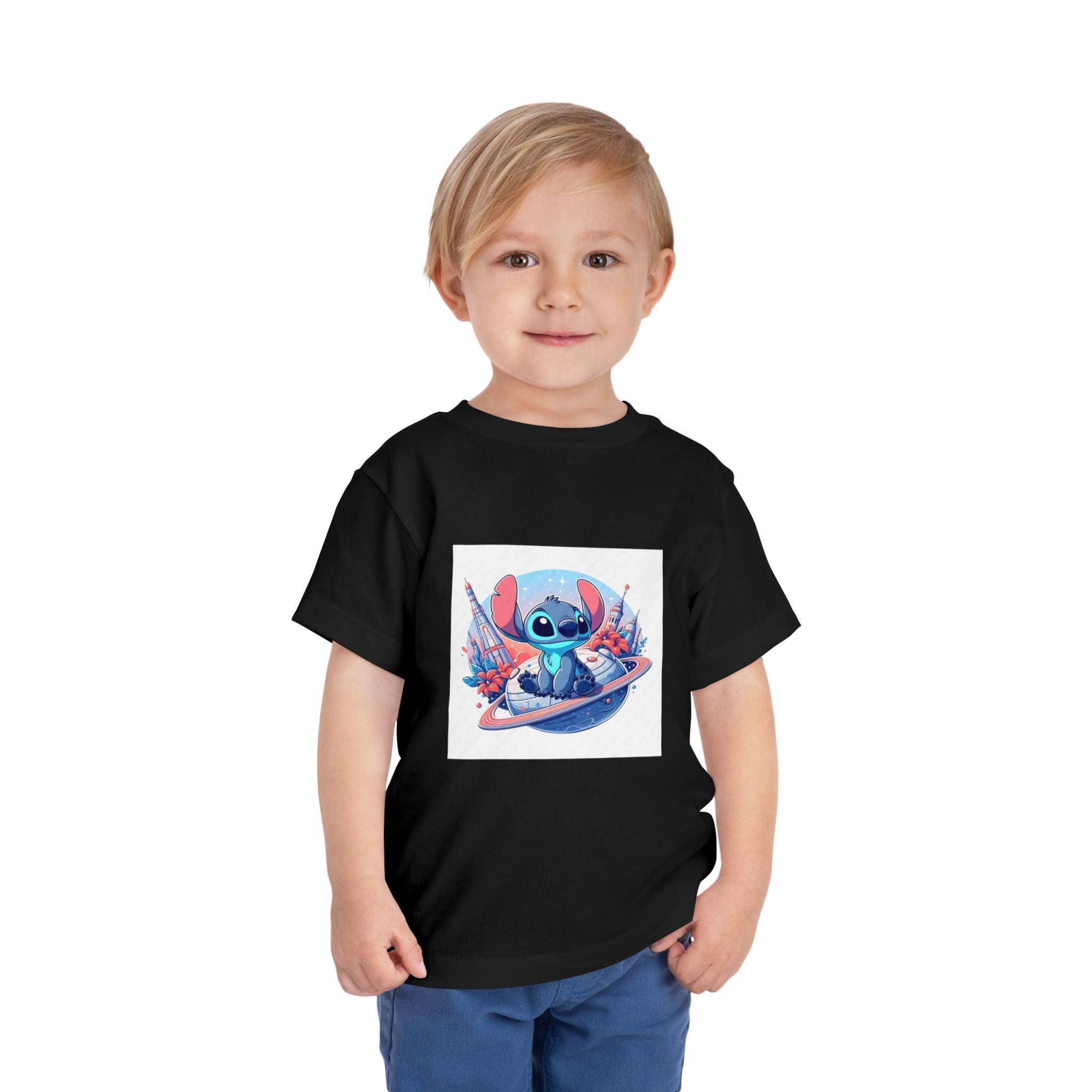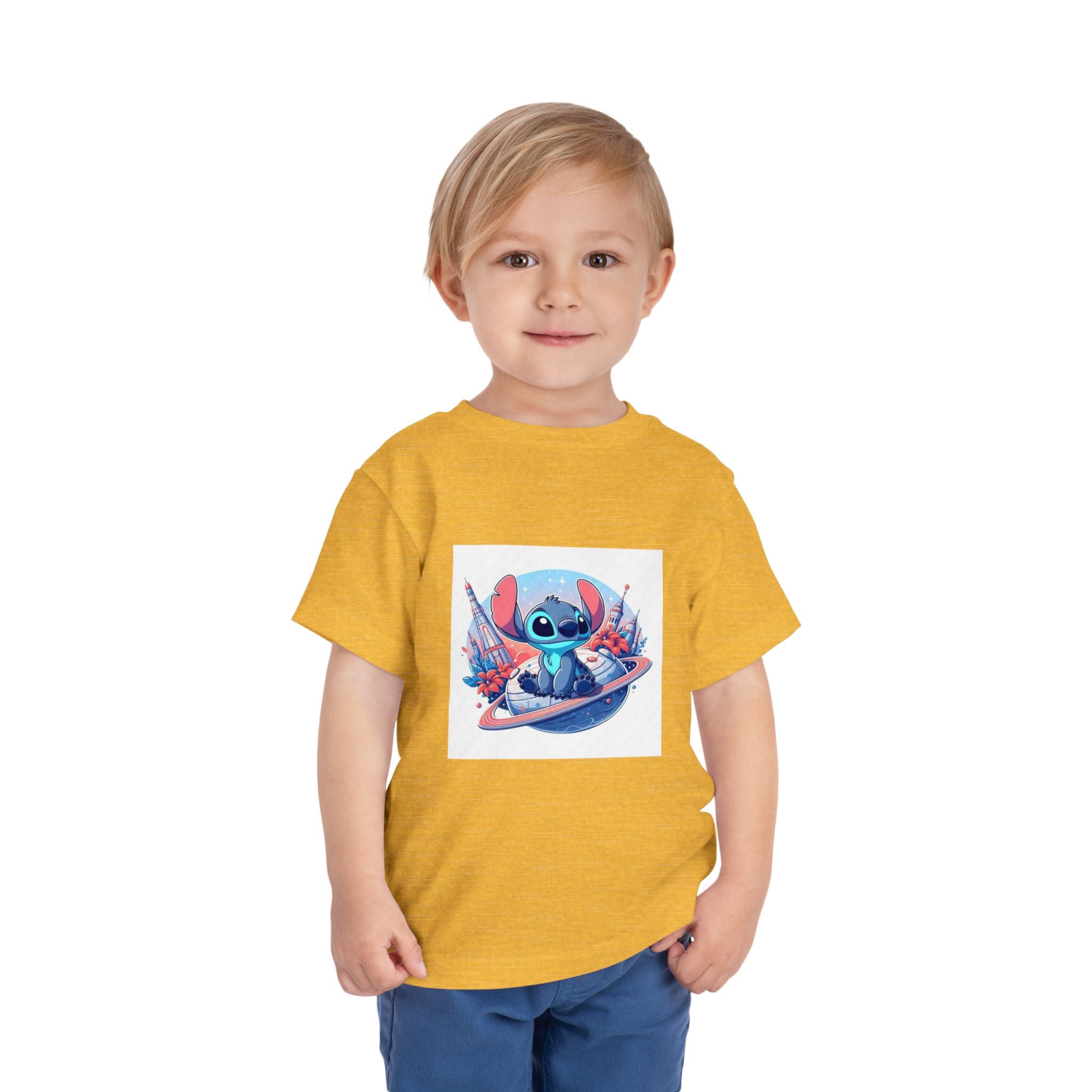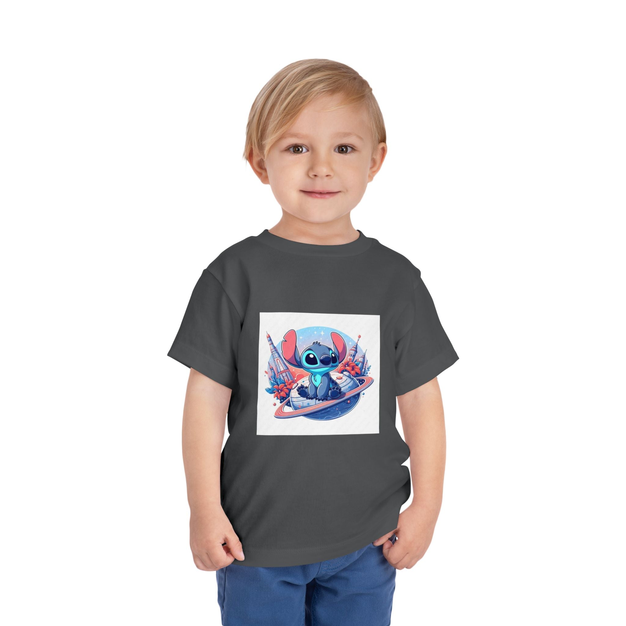 A soft, lightweight toddler tee featuring a whimsical space-themed character illustration. Gentle on sensitive skin, the shirt brings playful color and imagination to everyday wear. Short sleeves and a clean crew neckline keep movement easy for busy little explorers. The small, centered print adds charm without overwhelming the simple white canvas — great for layering under jackets or pairing with playtime shorts. Breathable fabric and a tear-away label mean fewer irritations and more comfortable adventures.