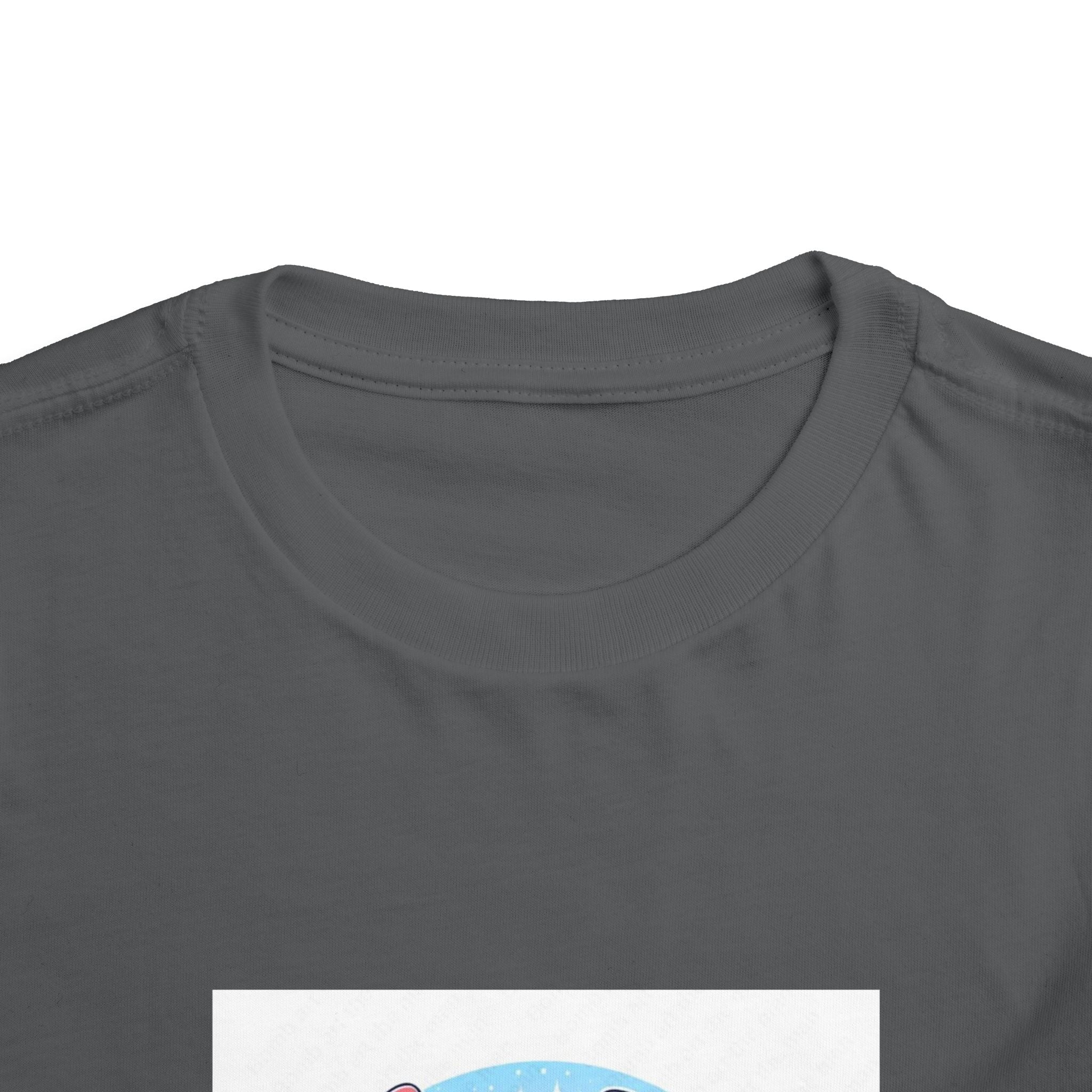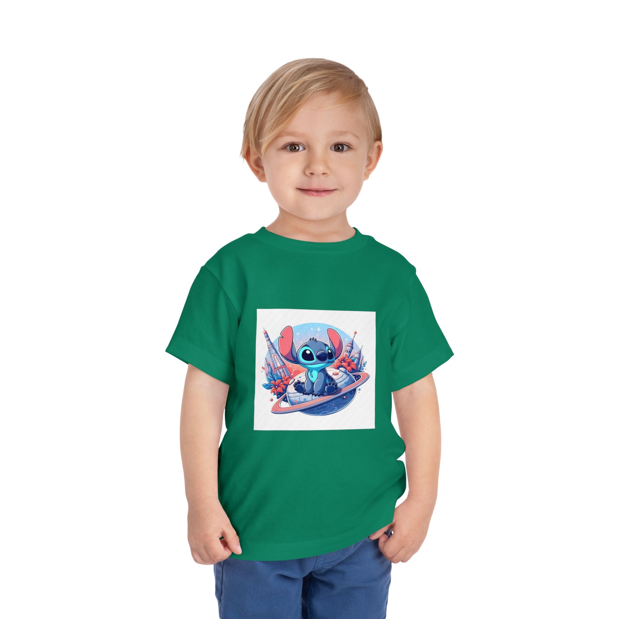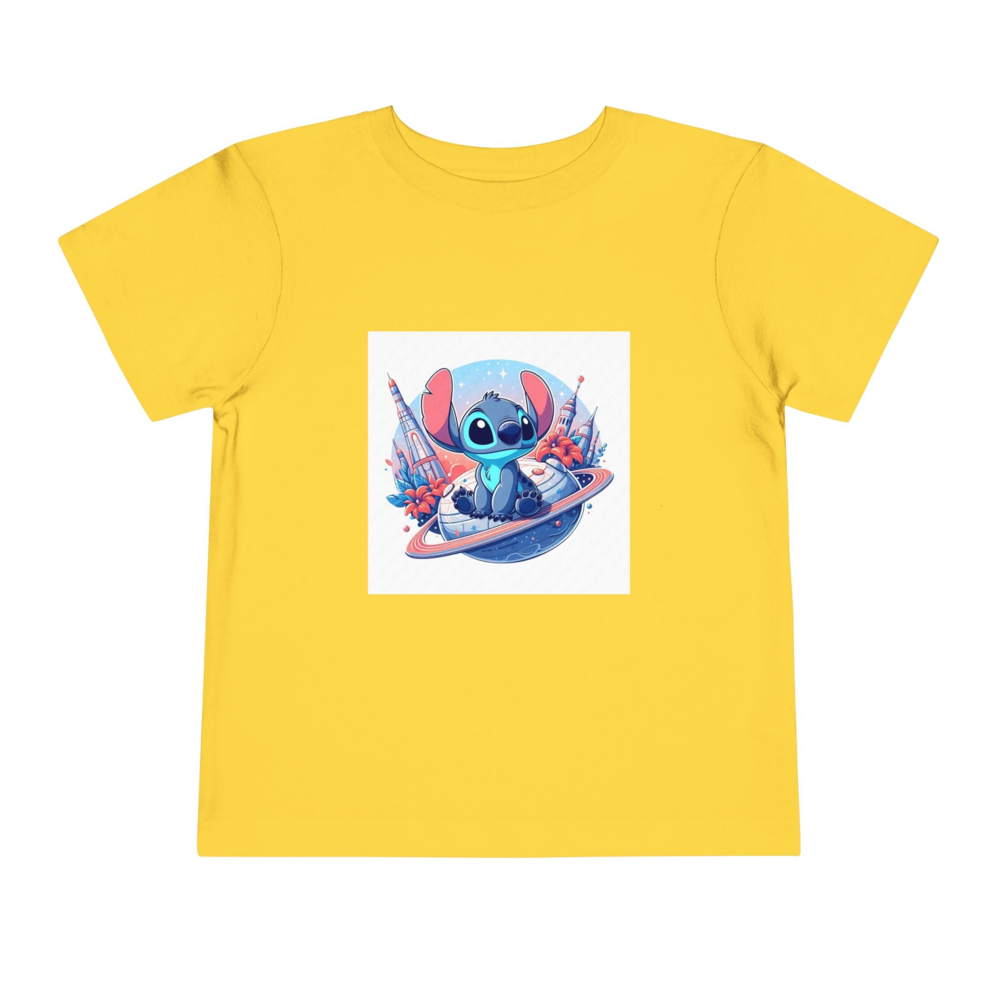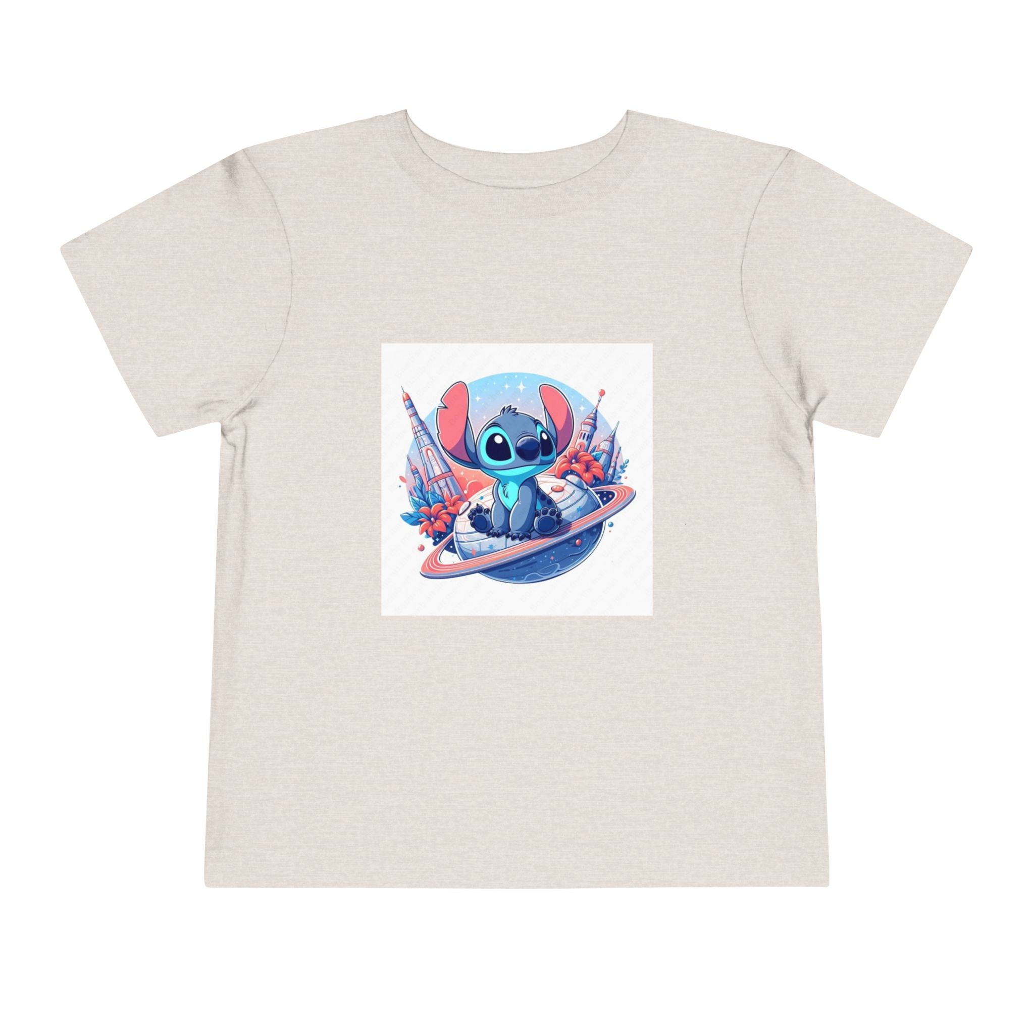 A soft, lightweight toddler tee featuring a whimsical space-themed character illustration. Gentle on sensitive skin, the shirt brings playful color and imagination to everyday wear. Short sleeves and a clean crew neckline keep movement easy for busy little explorers. The small, centered print adds charm without overwhelming the simple white canvas — great for layering under jackets or pairing with playtime shorts. Breathable fabric and a tear-away label mean fewer irritations and more comfortable adventures.