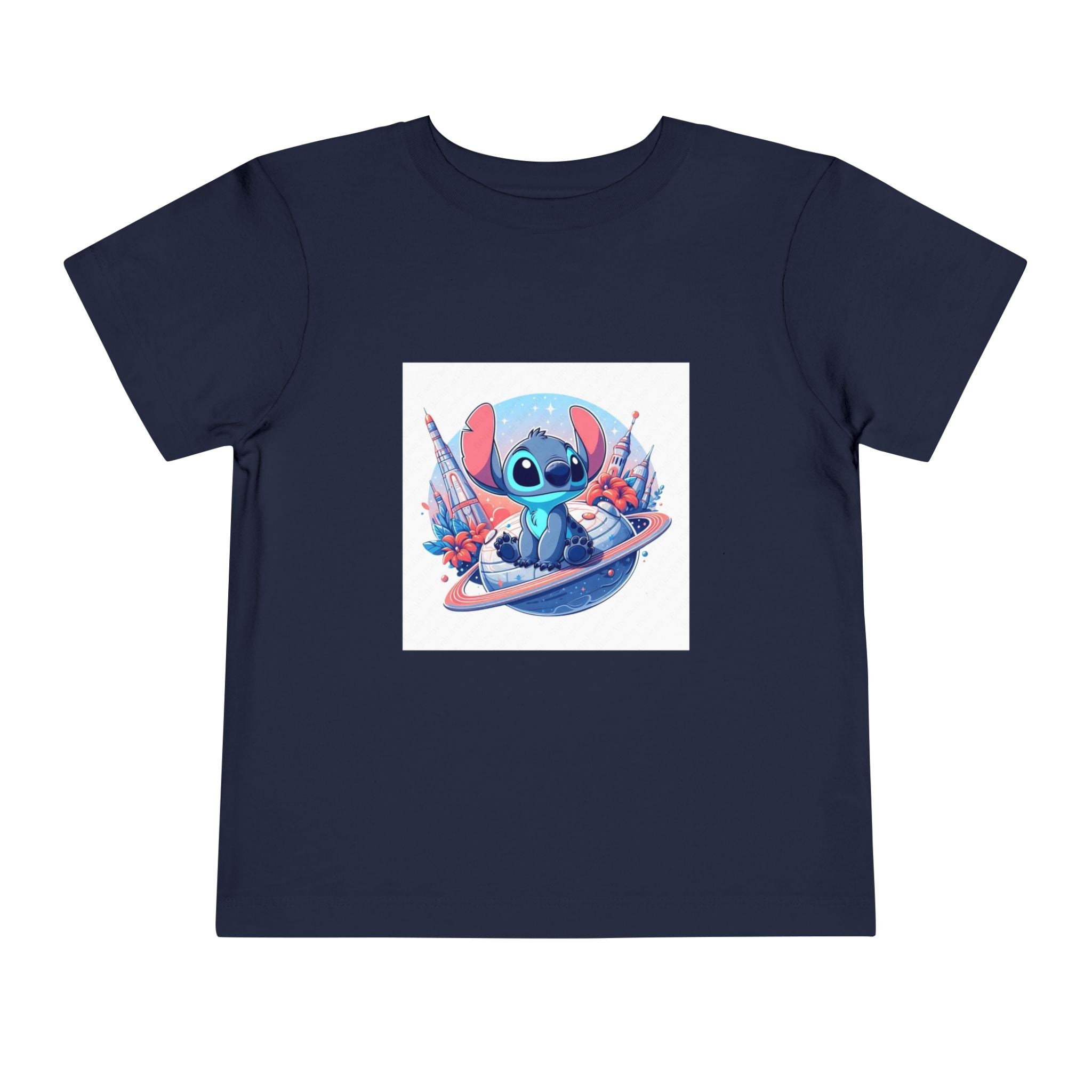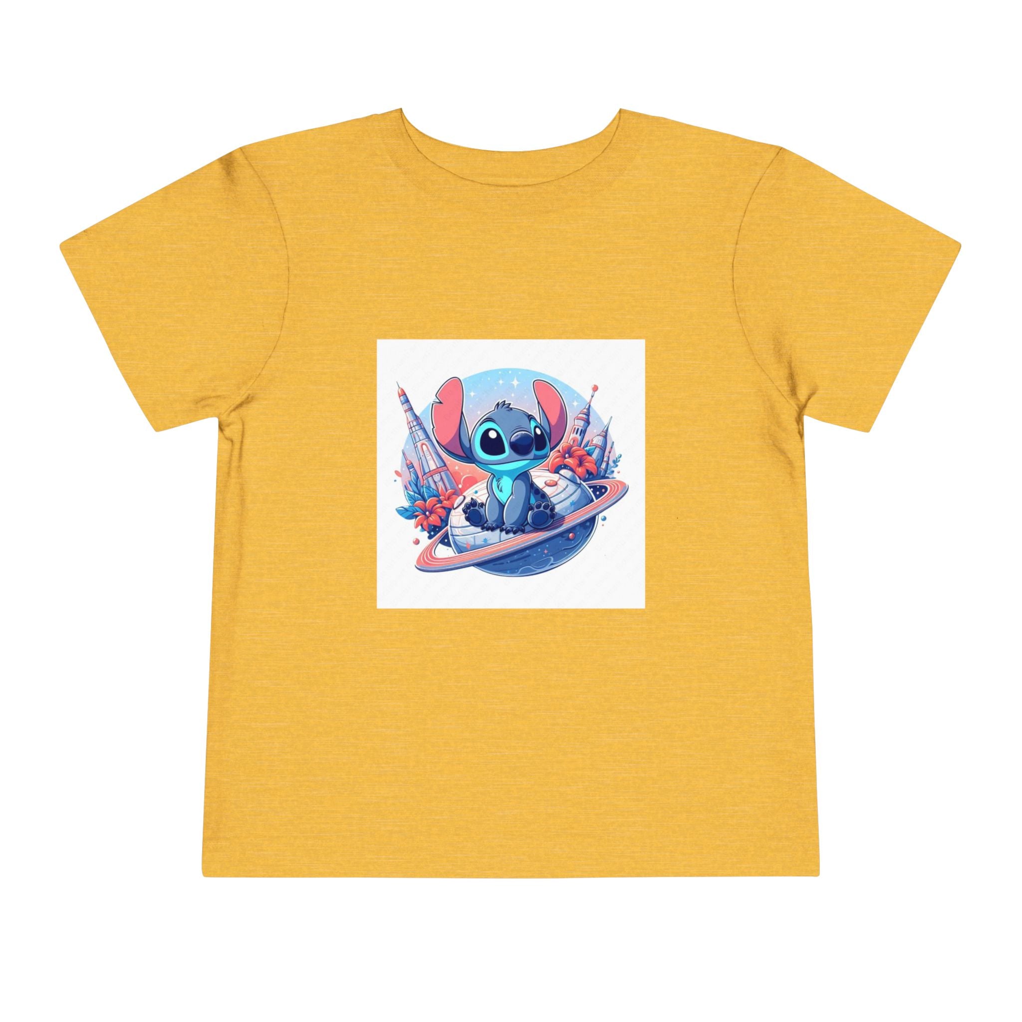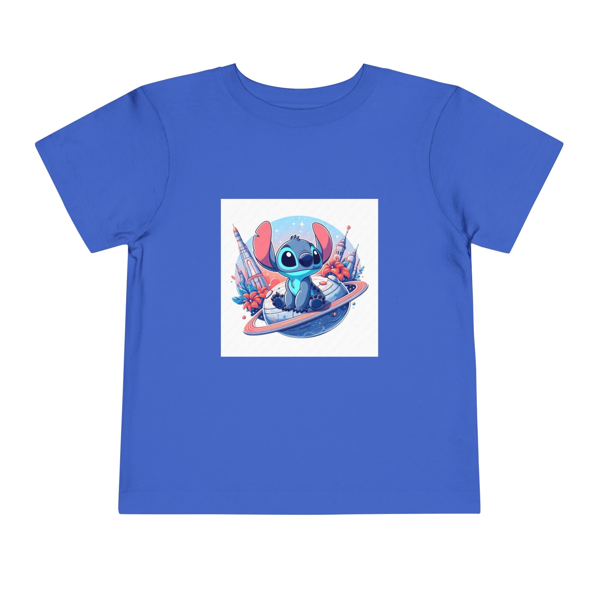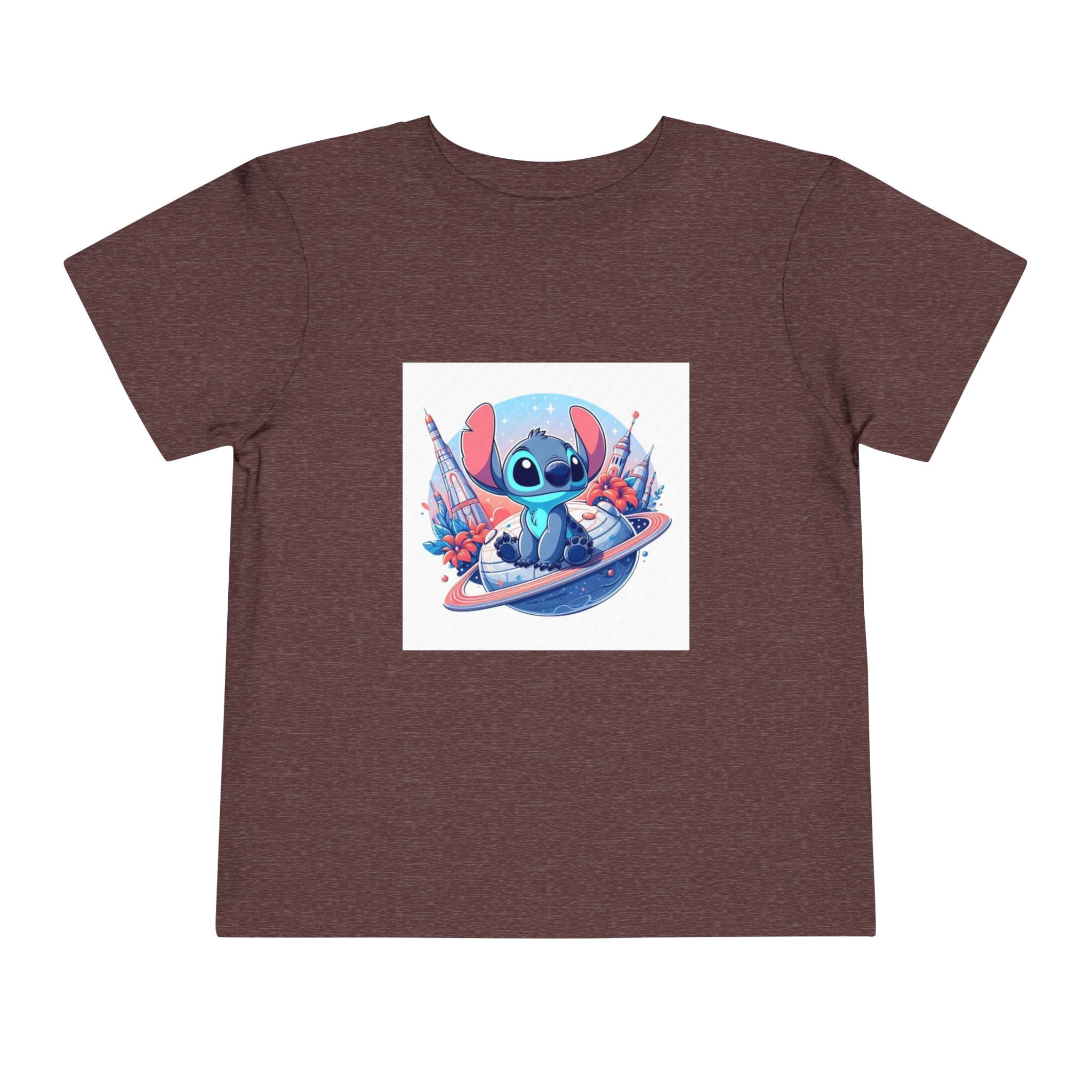 A soft, lightweight toddler tee featuring a whimsical space-themed character illustration. Gentle on sensitive skin, the shirt brings playful color and imagination to everyday wear. Short sleeves and a clean crew neckline keep movement easy for busy little explorers. The small, centered print adds charm without overwhelming the simple white canvas — great for layering under jackets or pairing with playtime shorts. Breathable fabric and a tear-away label mean fewer irritations and more comfortable adventures.