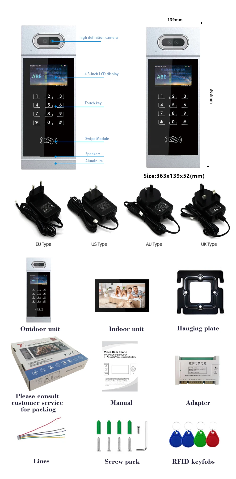 Increase quantity for Visual iIntercom System Doorbell Home HD Face Recognition Access Control System Intelligent Indoor Machine Set