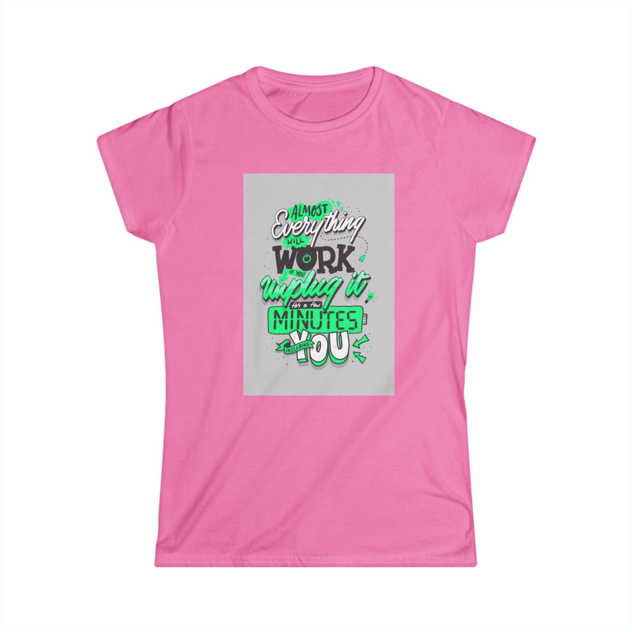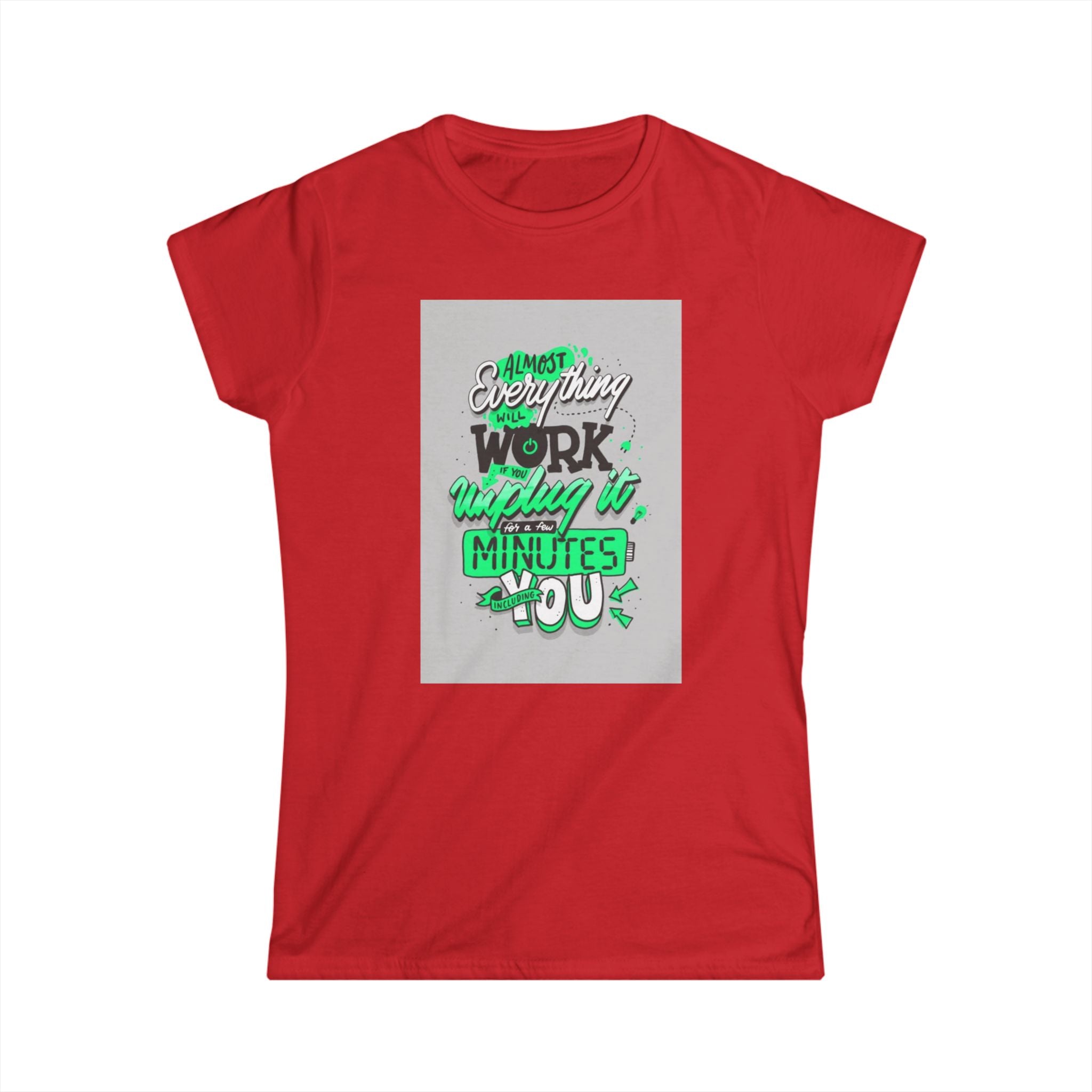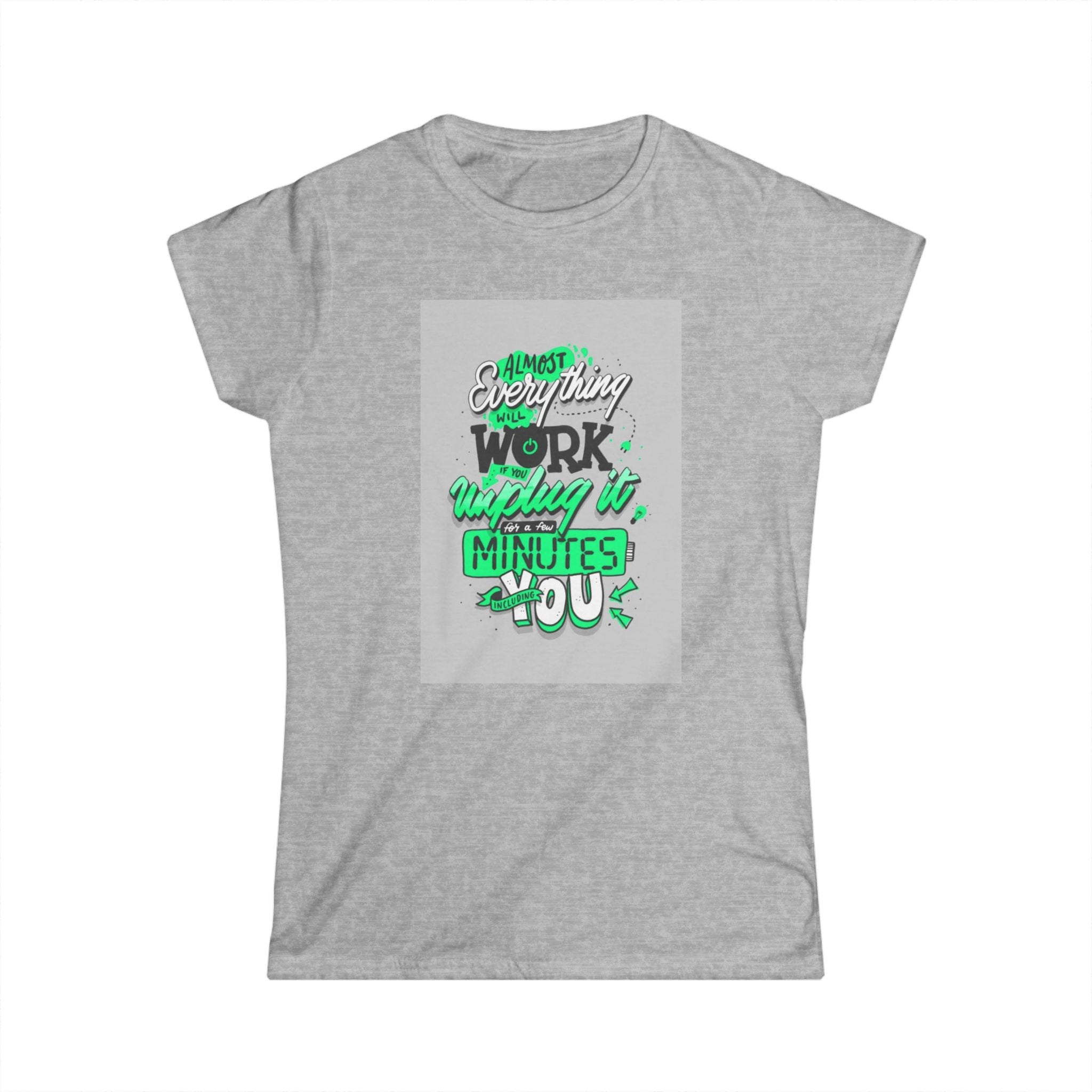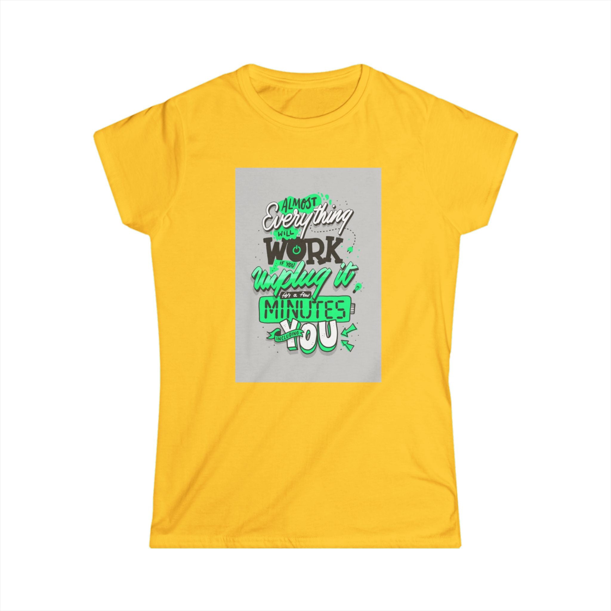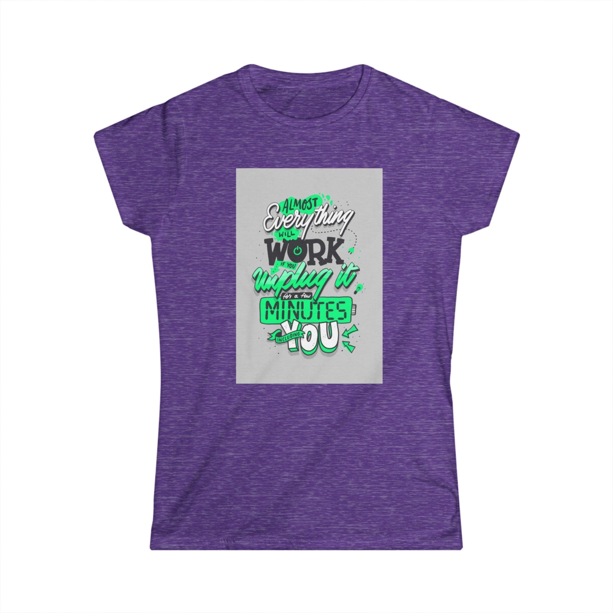 The woman's softstyle tee is a more feminine take on the classic tee. The sleeves are shortened to reveal some shoulder. The fabric is 100% ringspun cotton for all solid colors. The shoulders are taped with twill to prolong durability. The collar seam is reinforced with ribbed knitting.